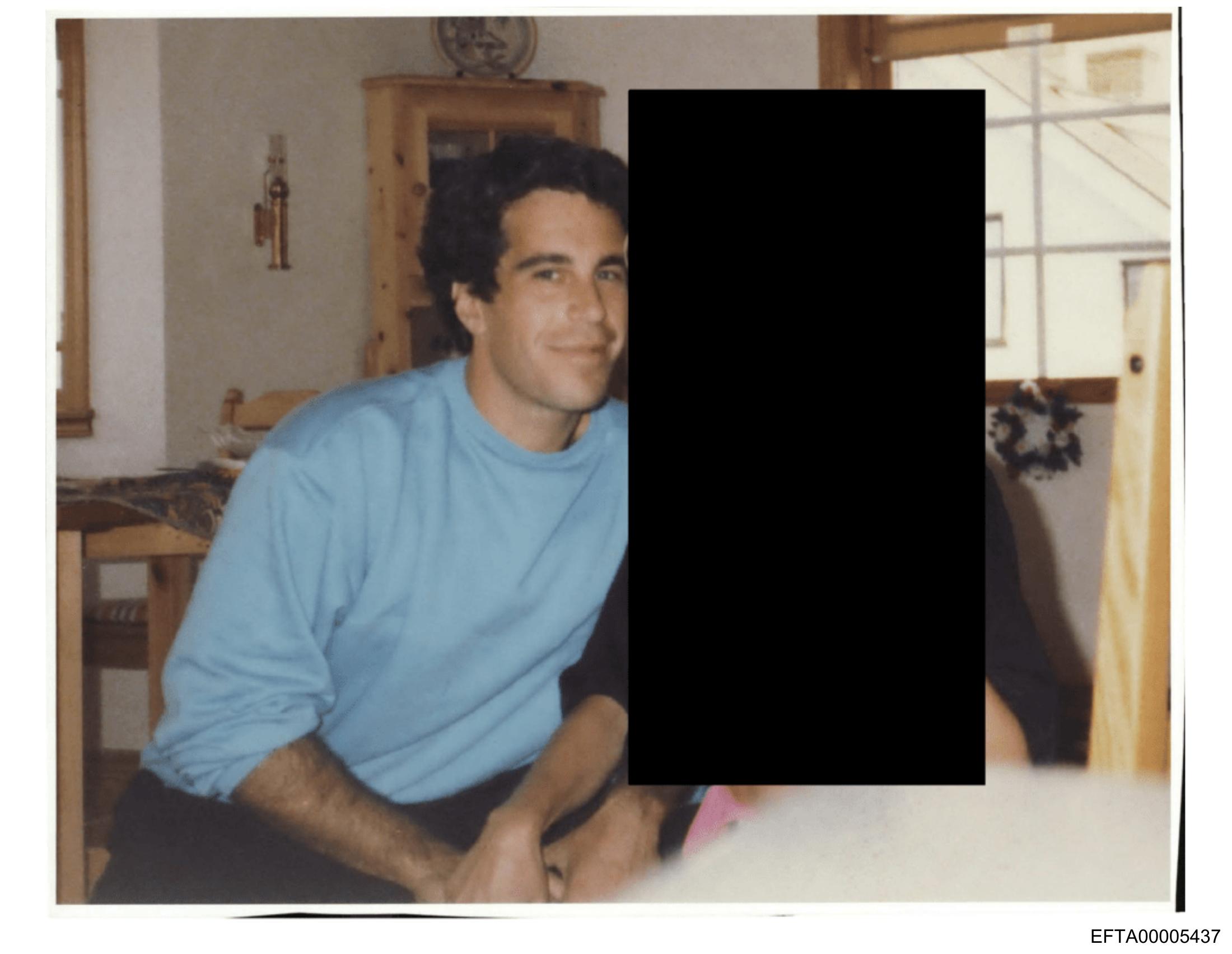 The image shows a man seated at what appears to be a table with a blurred object behind him that could possibly be a painting.
