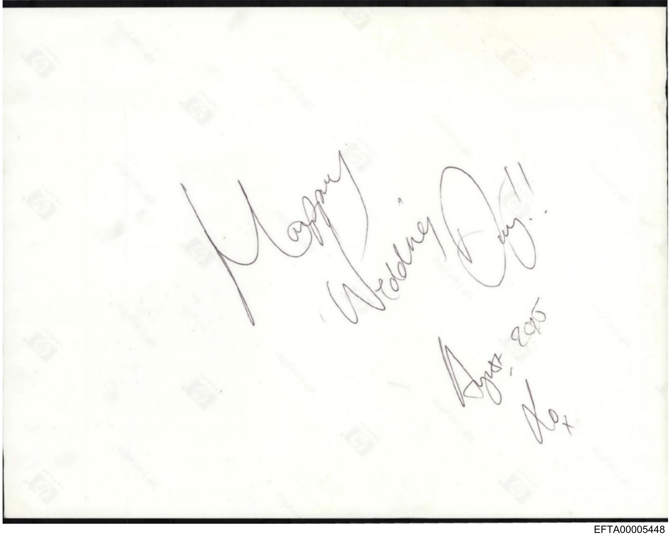The image appears to be a photograph of a handwritten message on a piece of paper or card. The writing is in black ink and there are several lines of text that are not completely legible due to the resolution and angle of the photo. However, one can discern that it includes words like "Happy Birthday" and there's a name written which seems to be 'Rossi'. There are also two dates mentioned: 1986 and 2005, indicating some anniversaries or birth years possibly related to people named in the card. The signature at the end suggests that the message is personalized and sent from someone named Augusto.
