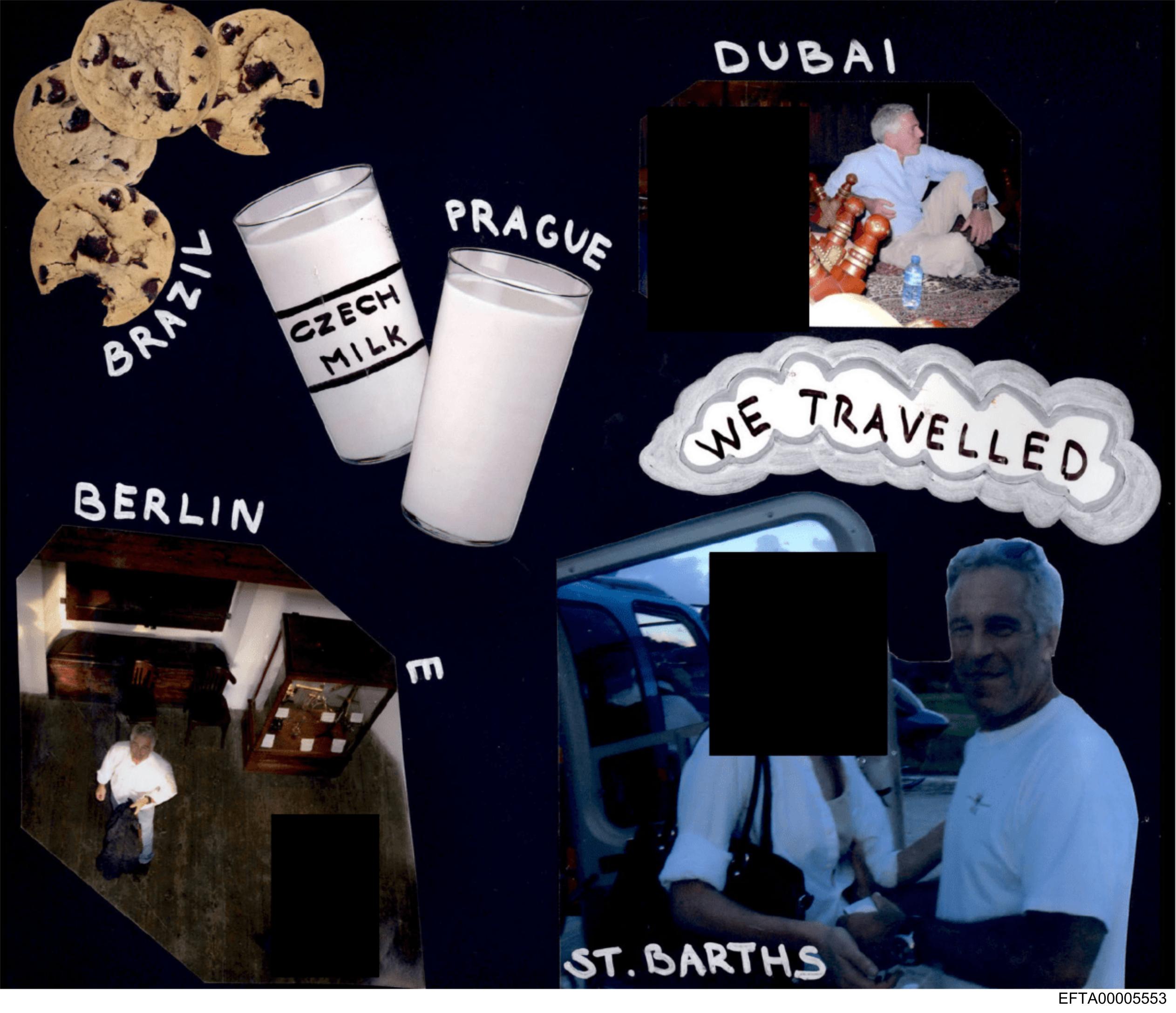 The image is a collage of various photographs and graphics related to travel. In the center, there's a photograph of a person sitting at what appears to be a bar counter with a glass in front of them that reads "BEER". To the left of this central figure, there are smaller images: one showing a stack of books or possibly brochures, another depicting what seems to be a piece of luggage, and a third showing a street scene with a sign that says "DUBAI". On the right side, there's an additional photograph featuring another individual who looks like they might be holding a drink. The overall theme suggests travel adventures in different locations such as Dubai, Prague, Brazil, St. Barths, and Germany.