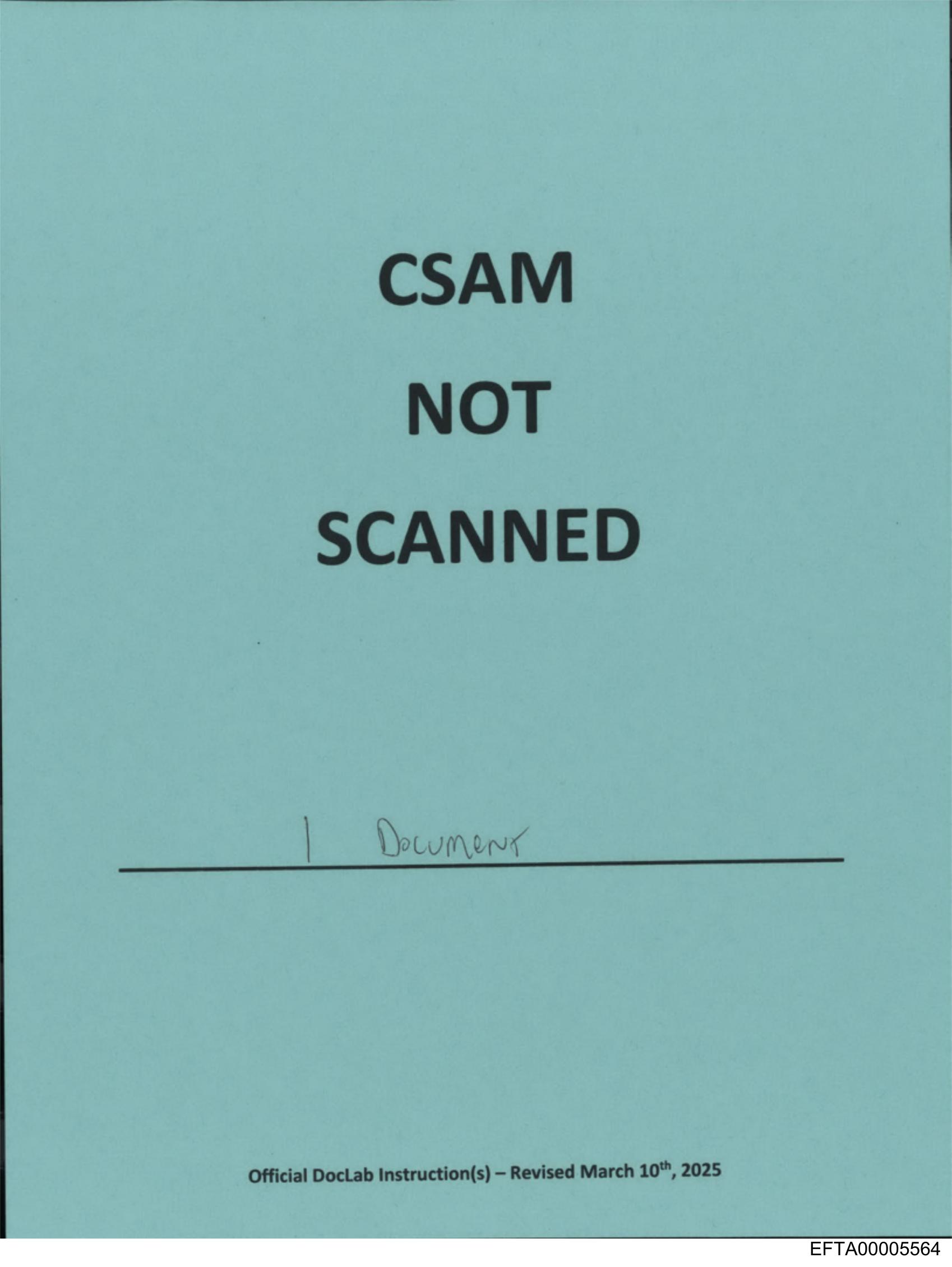 The image shows a blue piece of paper with white and red text. The main message is in red and reads "NOT SCANNED". Below that, there's handwritten text in black ink, which seems to be a date and some numbers. In the top right corner, there is more text in black ink, but it's not fully visible due to the angle of the photo. The paper appears to be an official document or instruction sheet, possibly related to scanning procedures, given its title "NOT SCANNED". There are no people, locations, or significant objects other than the piece of paper itself.