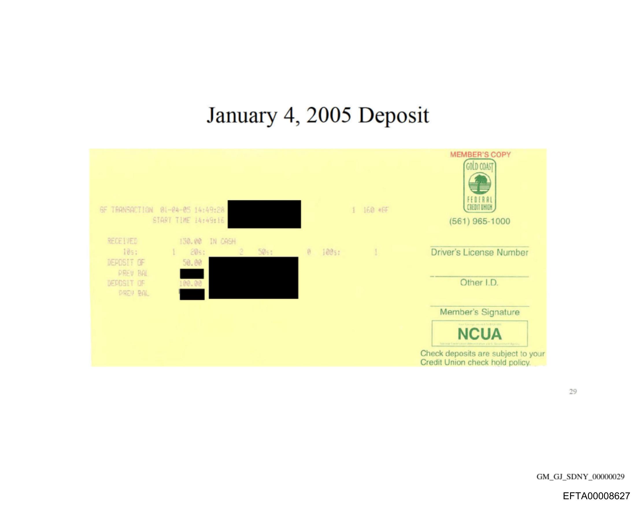 The image shows a deposit slip from January 4, 2006.
