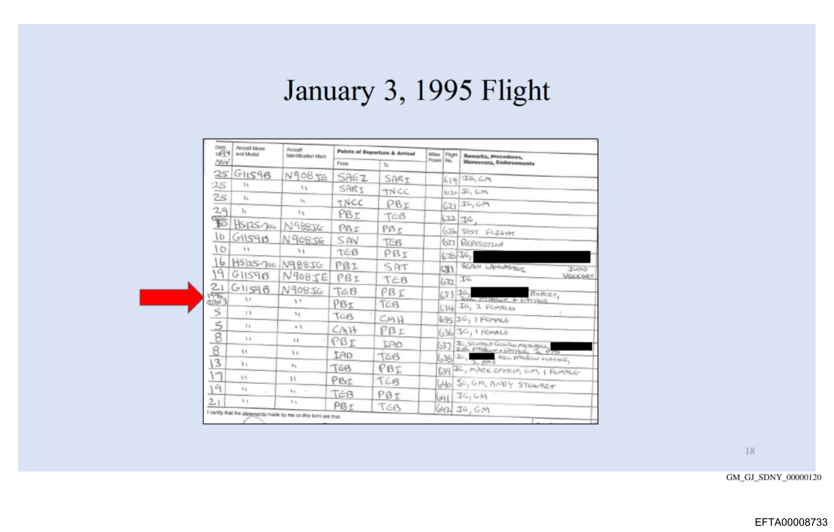 The image displays a document titled "January 3, 1996 Flight" with several lines of printed text that appear to be related to an aviation schedule or log.