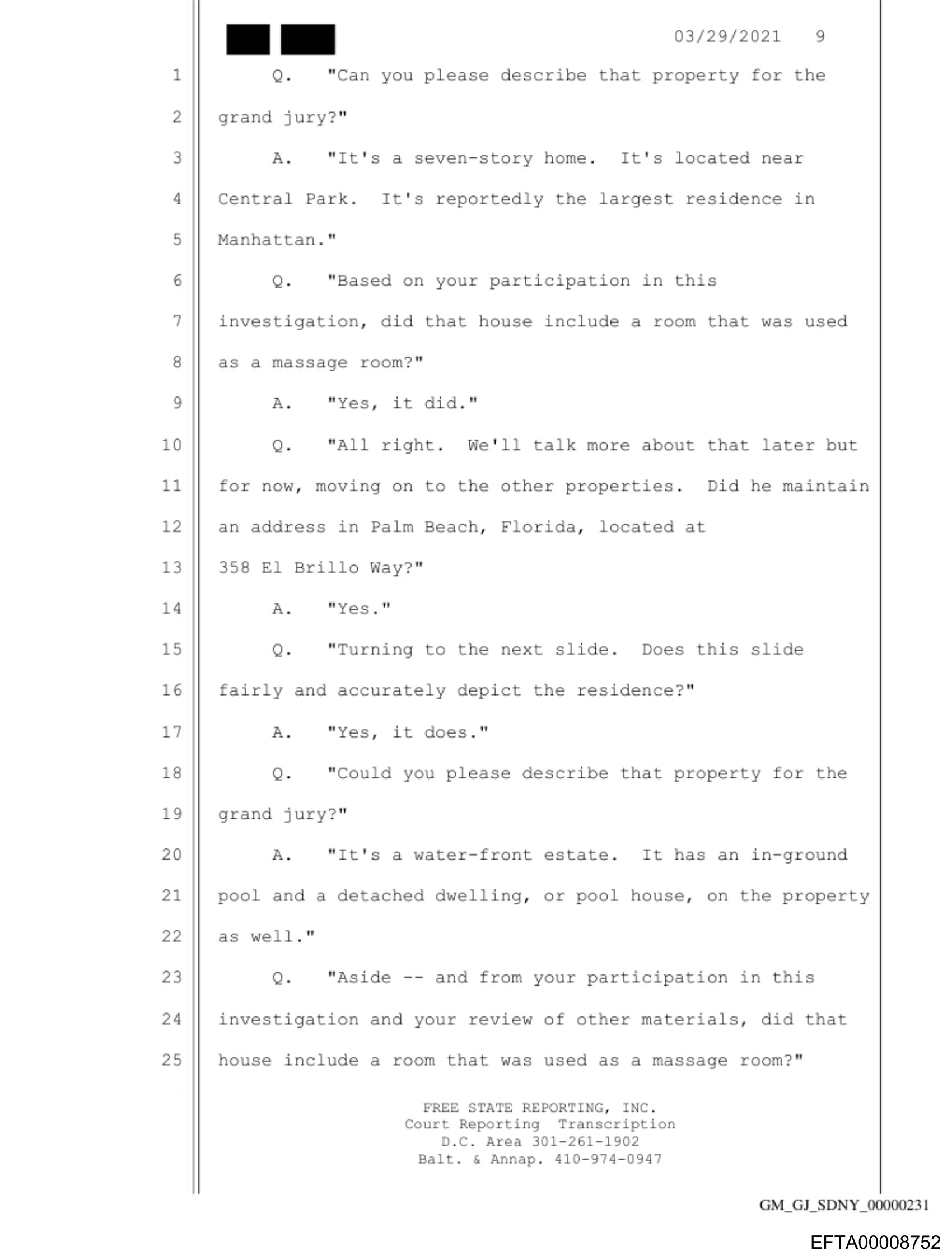The image displays a document with text on it, resembling a legal or official paper with question and answer segments. The content includes phrases such as "Q. Will you describe for the jury" and "A. I will now," suggesting that this is likely from a transcript of testimony in a court case or legal proceeding. Some words are redacted with black marks to obscure sensitive information. There's also a date visible at the bottom right corner of the page, but it's not clear enough to read accurately. The style of the document suggests it may be a printed copy from a hearing or trial record.