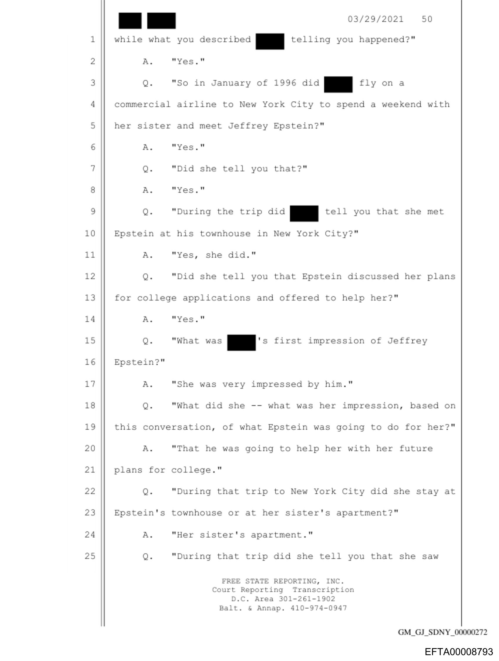 The image appears to be a photocopy of a document with some redacted sections, which are indicated by black lines through the text. It contains handwritten notes and text on what seems to be lined paper, possibly from an interview or an investigation given the nature of the questions and answers. The visible portions of the text include phrases like "Did you ask her?", "Yes, she did," and "She stayed with a friend at their apartment," suggesting inquiries about actions taken by an individual referred to as 'she'. There are references to locations such as a motel room, but specific details have been redacted for privacy or security purposes. The document is likely used for official records or legal proceedings due to its layout and the nature of the information it contains.