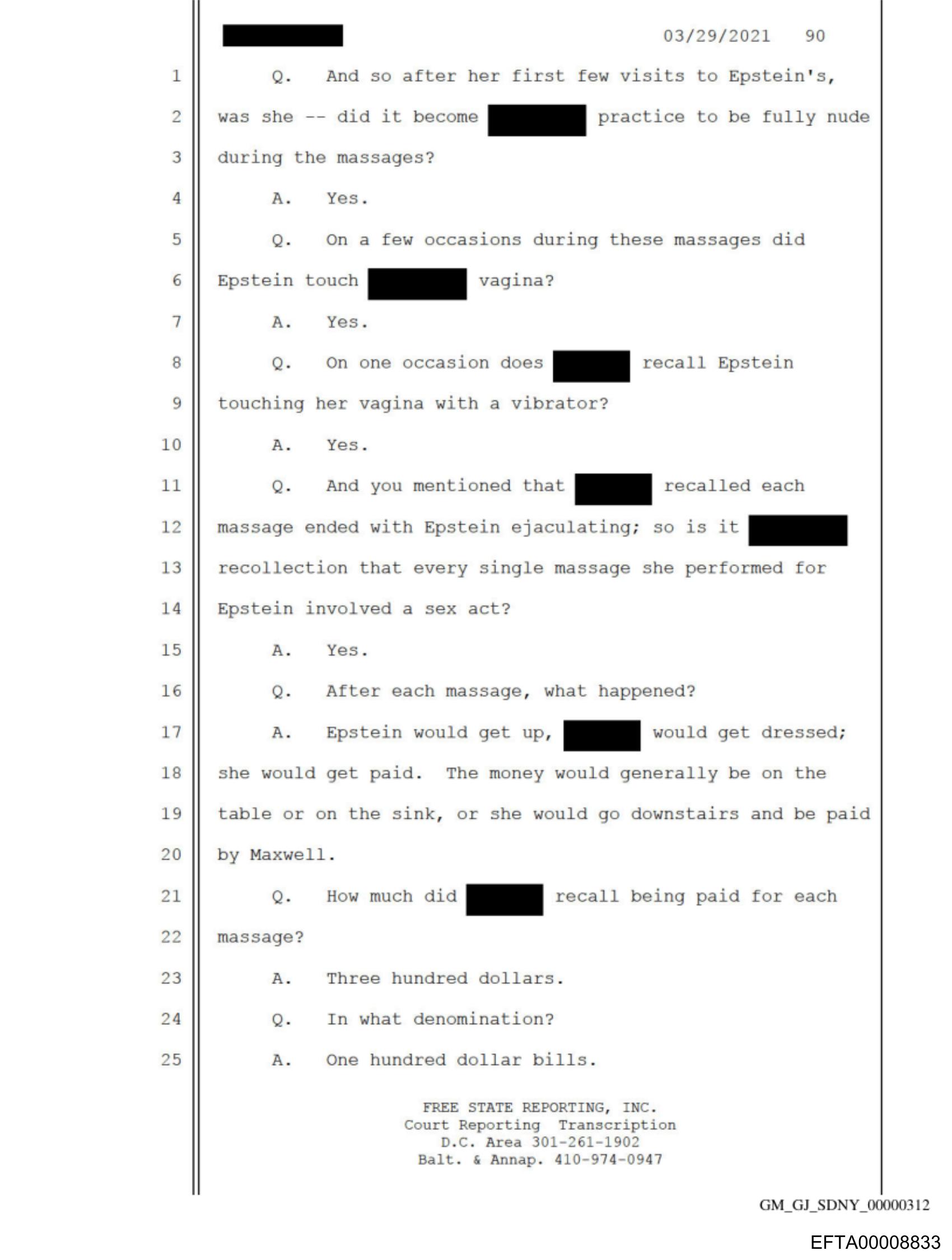 The image shows a document with handwritten text on it. It appears to be a legal transcription or notes from an investigation or court proceeding, as indicated by the context of the questions and answers. The document has several lines redacted with black marker strokes, concealing parts of the text. The visible portions include references to a person's statement about events, actions, and items associated with their case. The redaction suggests that some information is sensitive or confidential and is being kept from view.