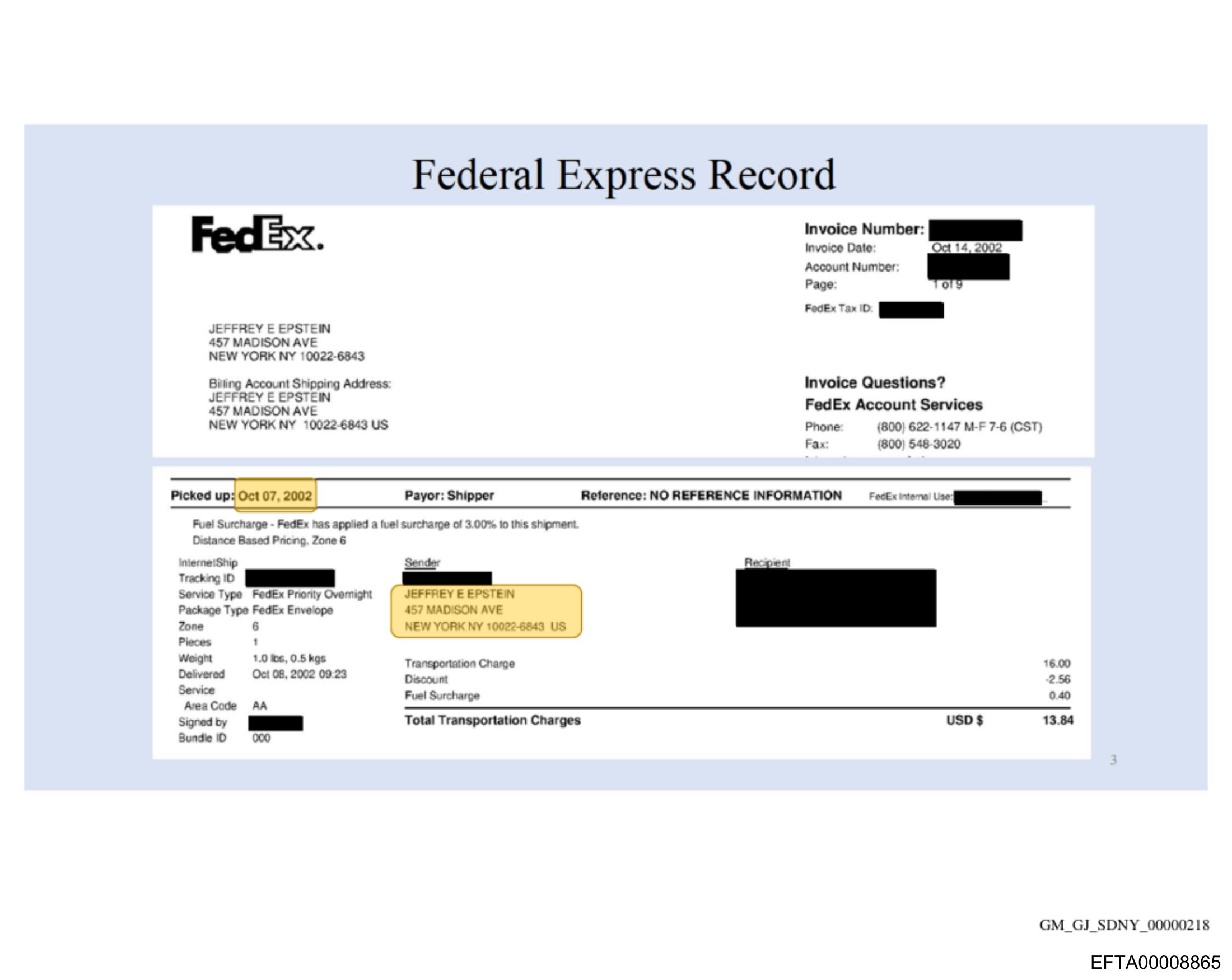 The image shows a document from Federal Express, commonly known as FedEx.
