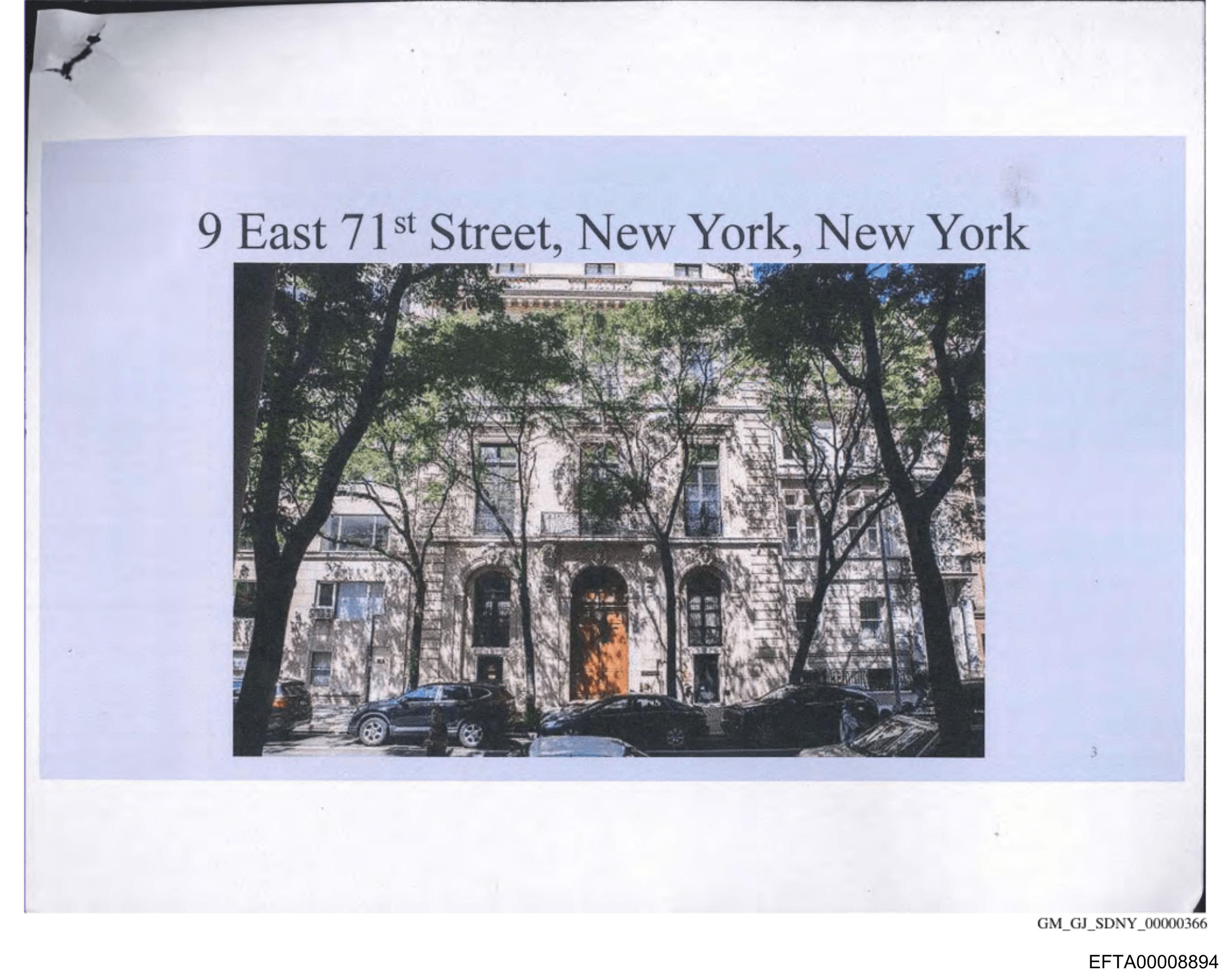 The image features the facade of a building at "9 East 71st Street, New York, New York" as indicated by the text on the top left corner.