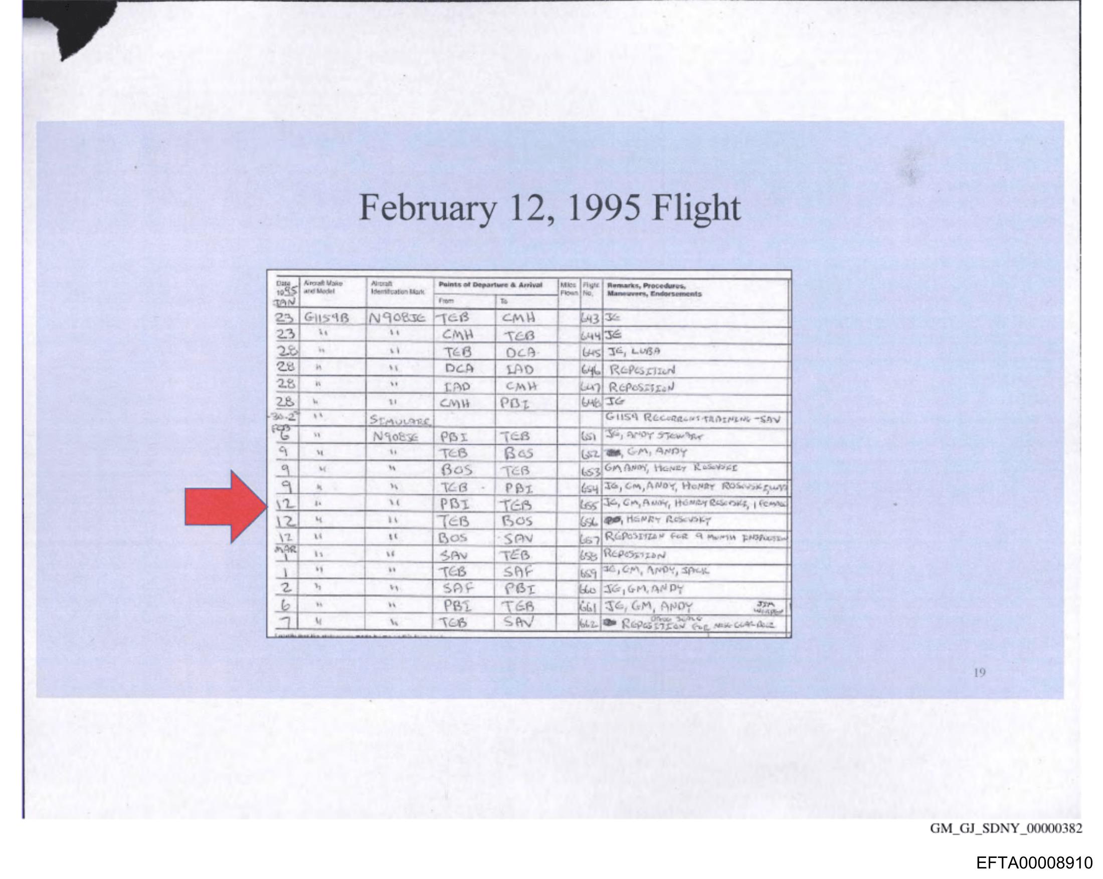 The image shows a digital presentation slide with the title "February 12, 1995 Flight" in bold, centered font at the top.
