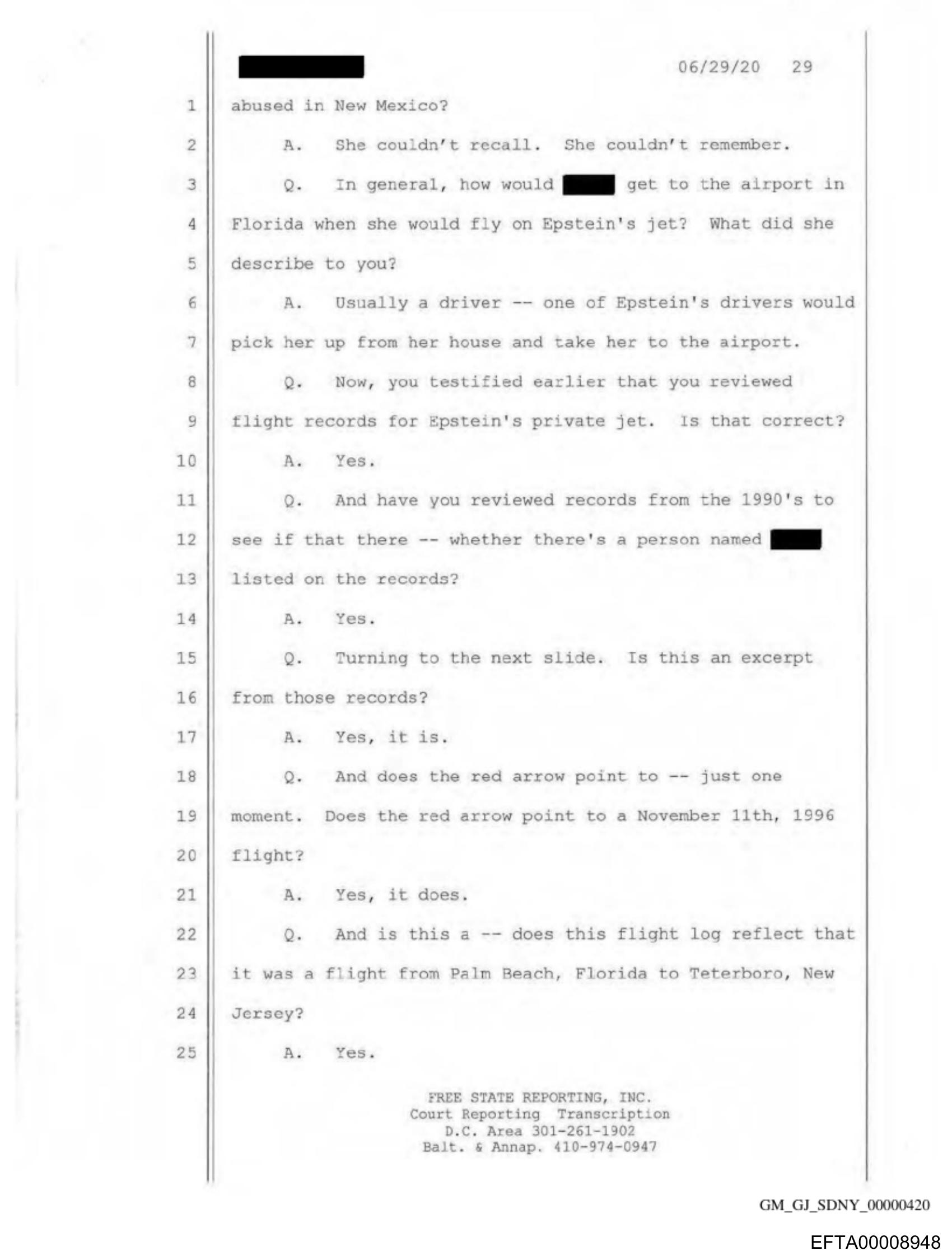 The image is a photograph of a document, possibly an interview transcript or statement record, with several lines of handwritten text. The document appears to be from an official proceeding due to the structured layout, numbering of questions, and the use of abbreviations such as "Q" for question and "A" for answer. There are some sections where text has been redacted with black lines covering it, indicating sensitive information is being concealed. The visible parts of the text include a reference to a specific date and time, which suggests that this document may be part of a court case or legal investigation. Additionally, there's a section titled "Docket Number" and other headings like "Question" followed by "Answer," implying an interview format. There are no visible images or people in the image; it is entirely text-based on a white background.