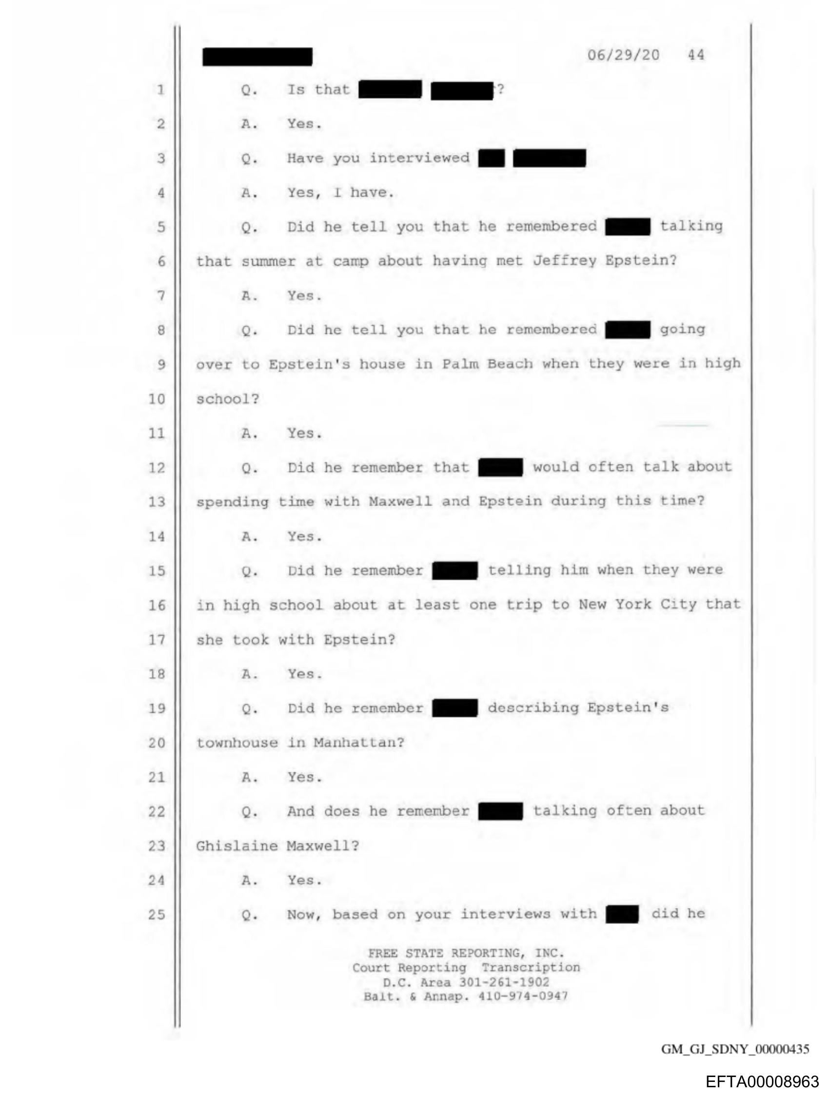 The image shows a document with several lines of text, each beginning with "Q:" followed by a question and an answer labeled as "A:". The questions appear to be related to a legal or investigative context, and the answers seem to be providing information relevant to those questions. There's also a visible name at the bottom left corner of the document, which is possibly the interviewer or interviewee. A date is present on the right side, indicating when the document was created or the date of an event. The text within the "A:" answers are redacted with black lines to hide their content.