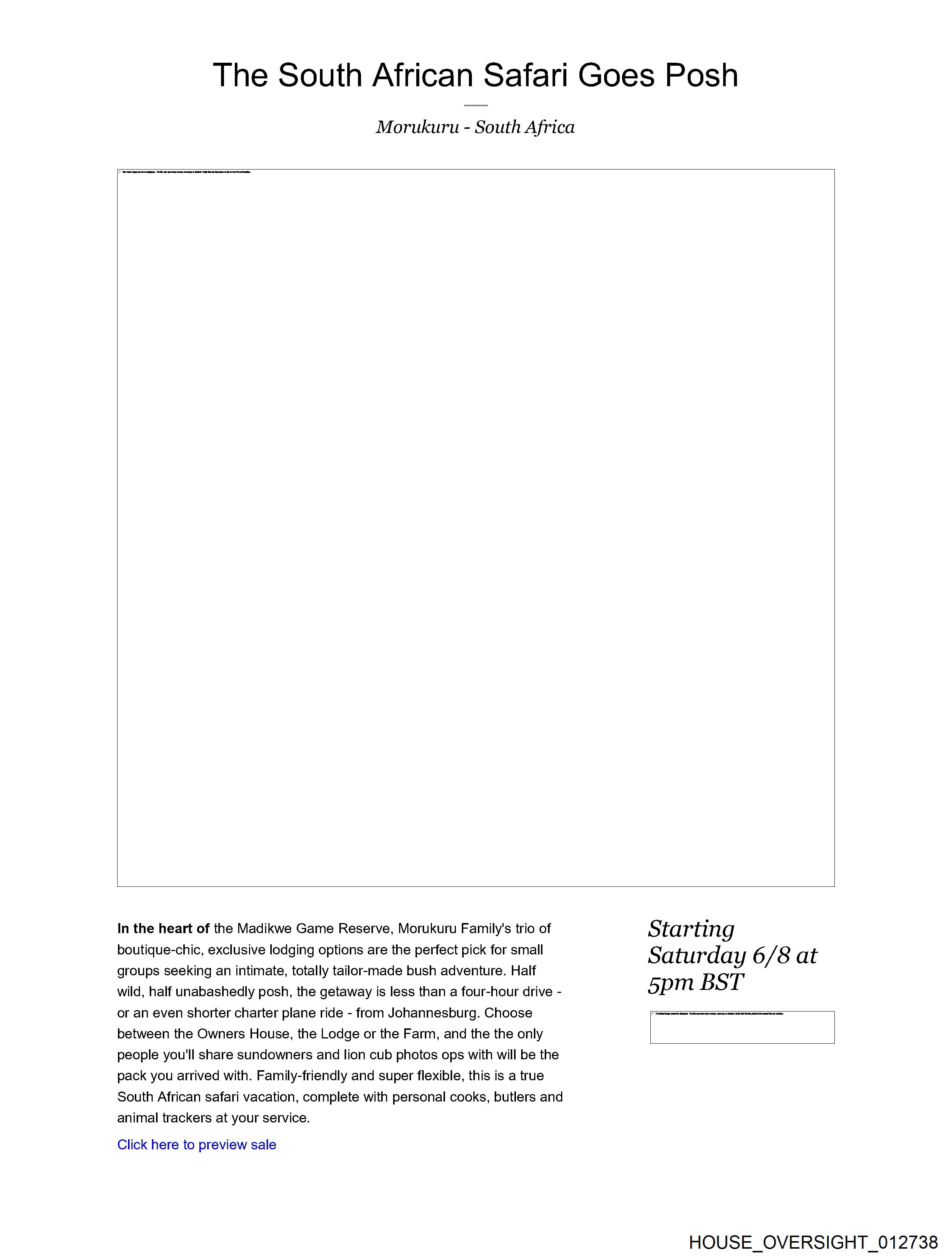 The image displays a text document with the title "The South African Safari goes posh" prominently at the top.