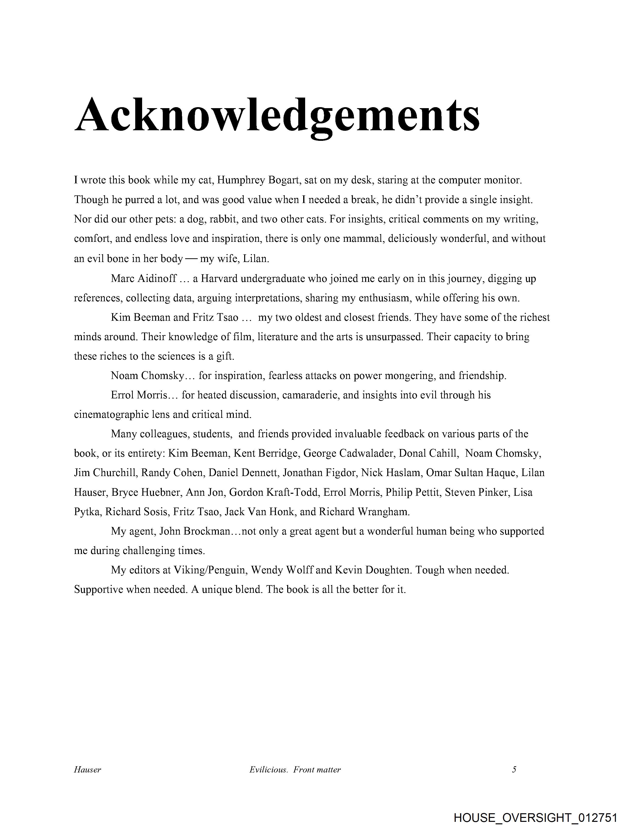 The image shows a document with the title "ACKNOWLEDGEMENTS" prominently displayed at the top in bold letters.