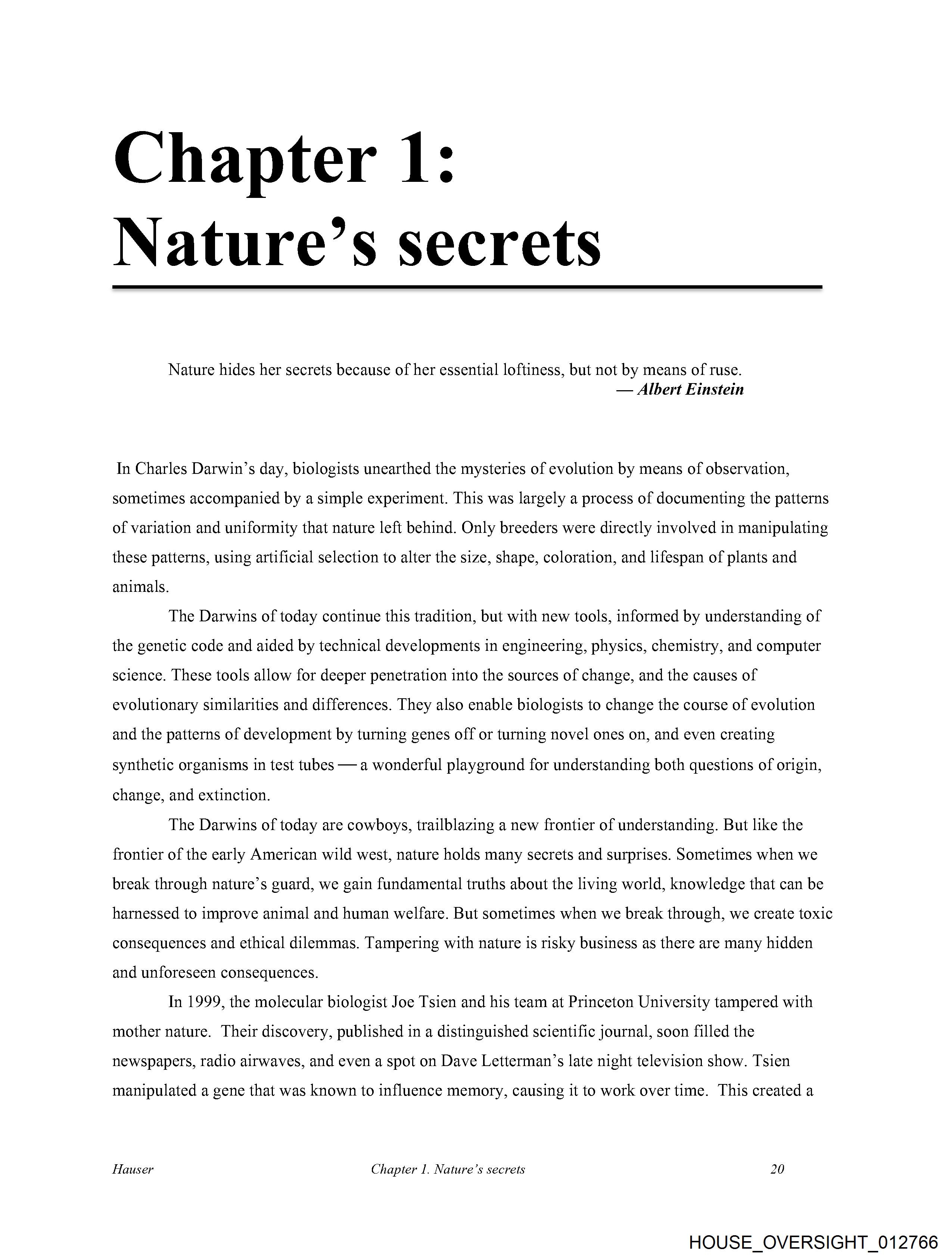 The image is a photograph of a document with the title "CHAPTER 1: NATURE'S SECRETS" at the top.