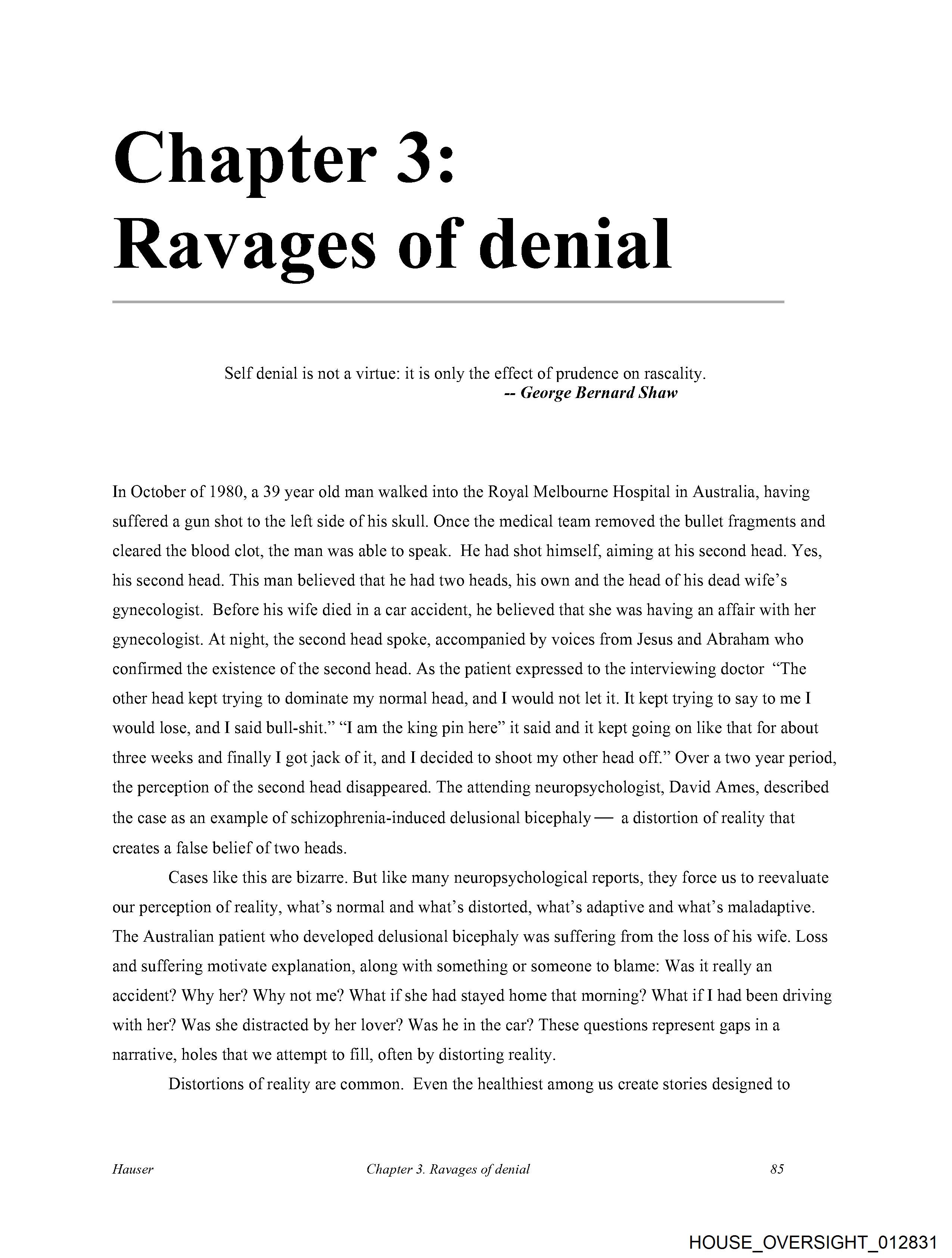 The image displays a page from what appears to be a book or document titled "Chapter 3: RAVAGES OF DENIAL".