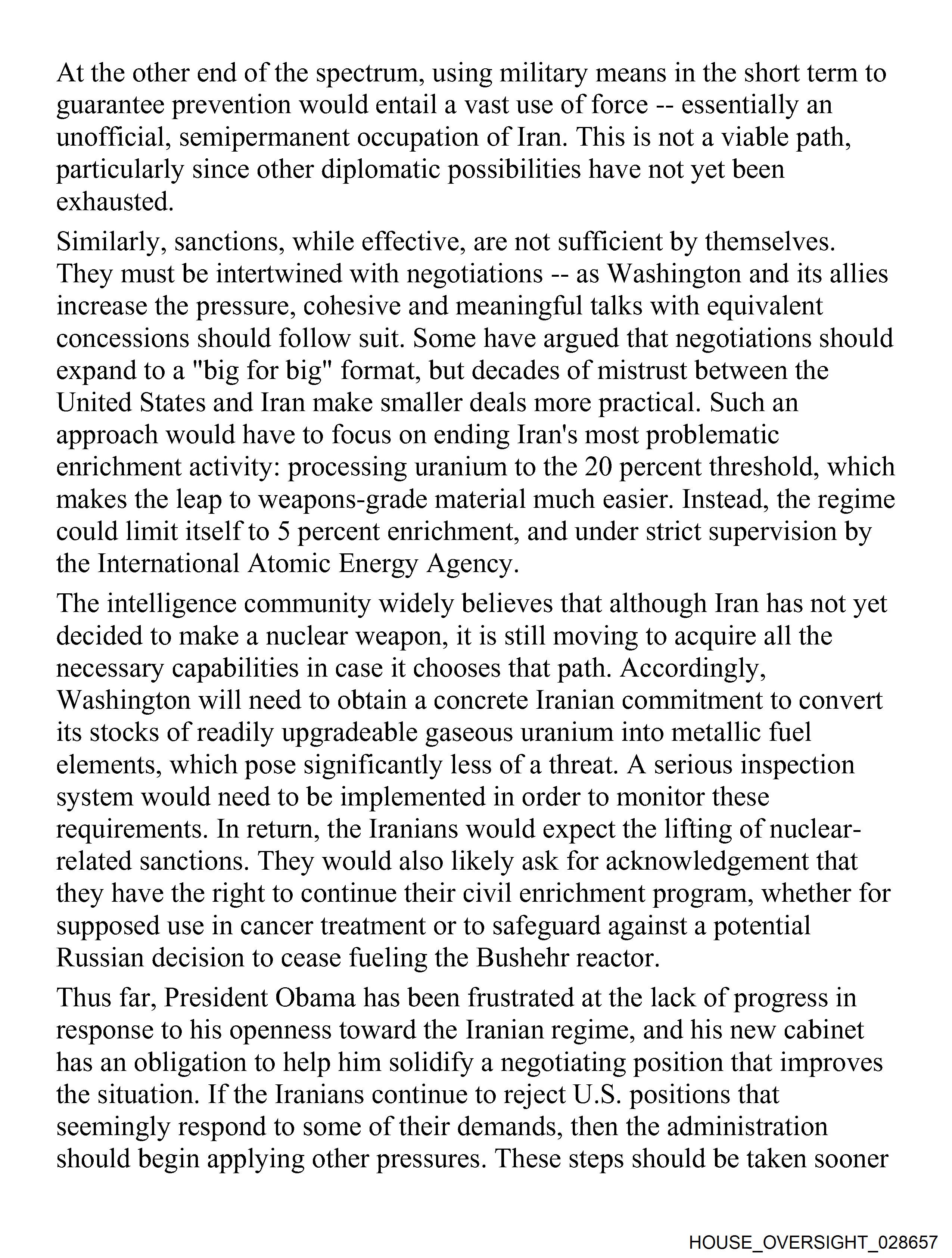 The image is a photograph of a document with printed text. The text appears to be an official document, possibly related to a political or legal matter given the context and style of the writing. There are no images or illustrations accompanying the text; it's just black ink on white paper. The document includes headings, paragraphs, and subheadings, suggesting a structured presentation of information. Due to the image quality and angle, some parts of the text may not be fully legible from this perspective.