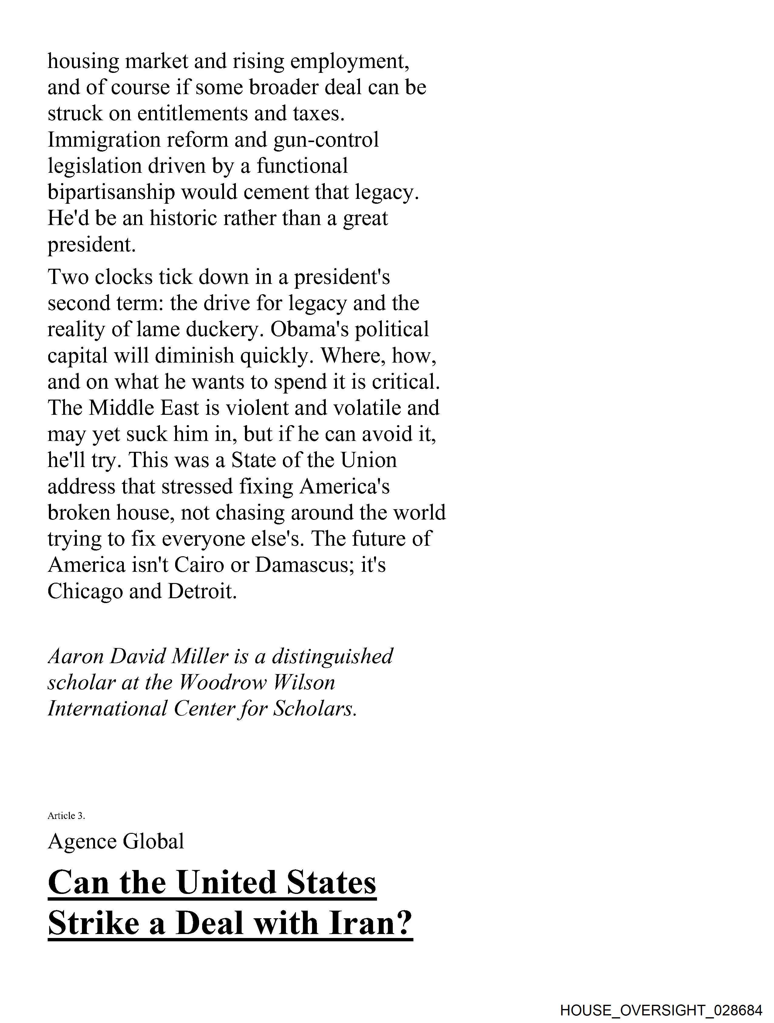 The image displays a printed document with a headline that reads "CAN THE UNITED STATES STRIKE A DEAL WITH IRAN.