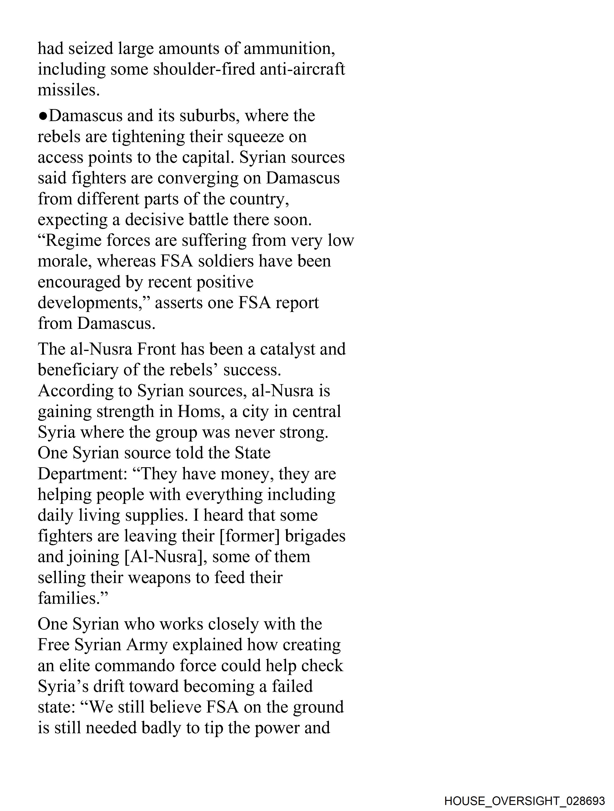 The image displays a page of text from a report or document concerning the situation in Syria and the actions taken by the United States.