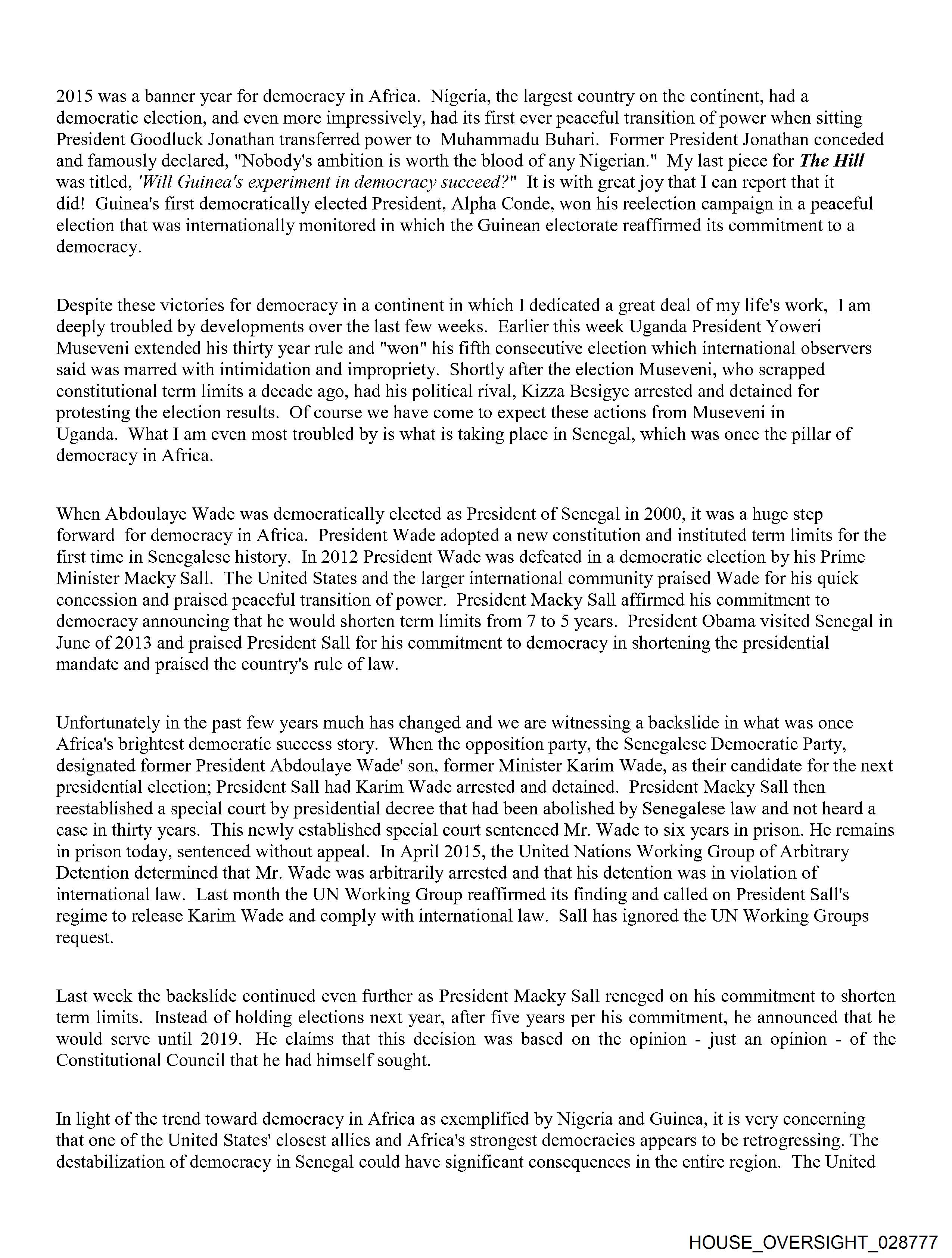 The image appears to be a photograph of a document with printed text on it. The style of the document suggests that it is an official paper, possibly related to legal matters or legislation. There are multiple paragraphs with black text against a white background, and there's visible text at the top right corner which seems to include names or titles. However, the specific content of the text is not clear due to the resolution and angle of the photograph. The document looks like it could be part of a report or a legal brief, based on its formal layout and presentation.