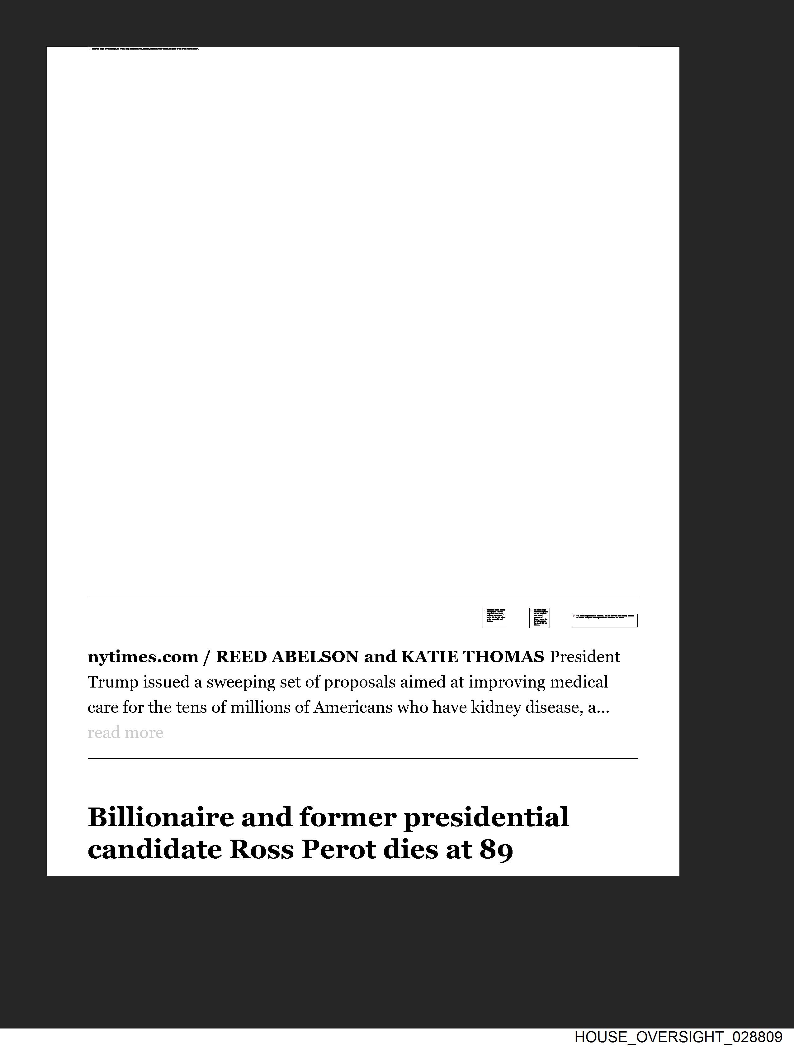 The image shows a grayscale photograph with some color elements such as red and blue accents at the edges. The focus is on an individual who appears to be seated in a room with a window. The person seems engaged in thought or perhaps looking at something off-camera. They have short hair, and the lighting suggests it might be daytime. There is visible text on the image, but it's partially obscured; only the words "Billionaire and former presidential candidate Ross Perot died at 89" can be read clearly. This text indicates that the person in the photo is likely Ross Perot, a notable figure associated with business and politics.