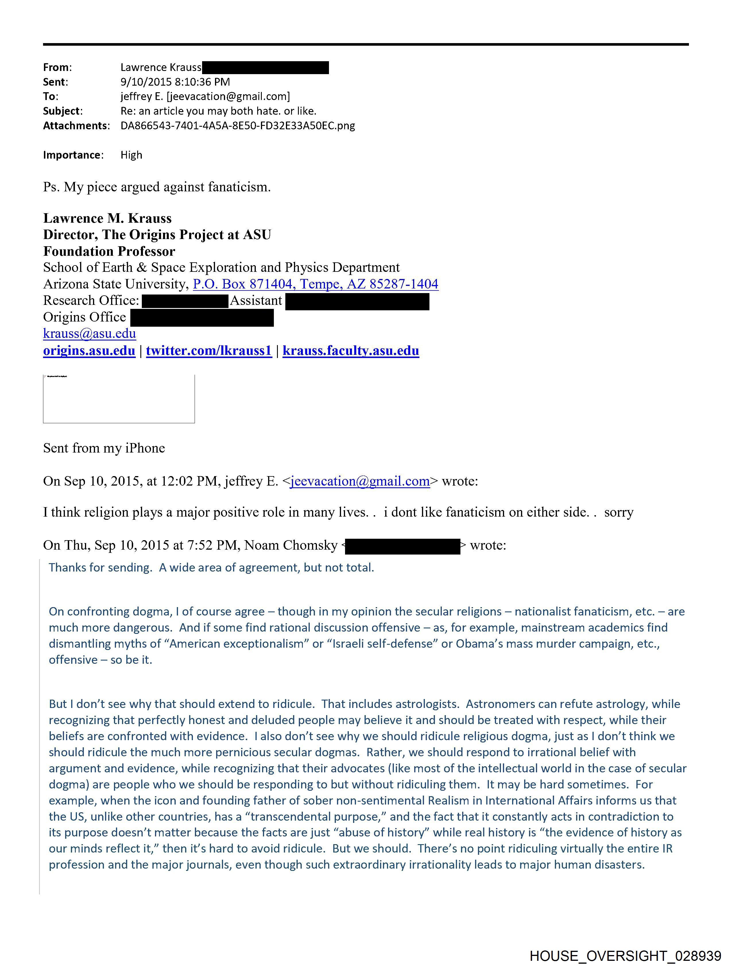 The image shows a printed document that appears to be an email with various lines of text crossed out for privacy.