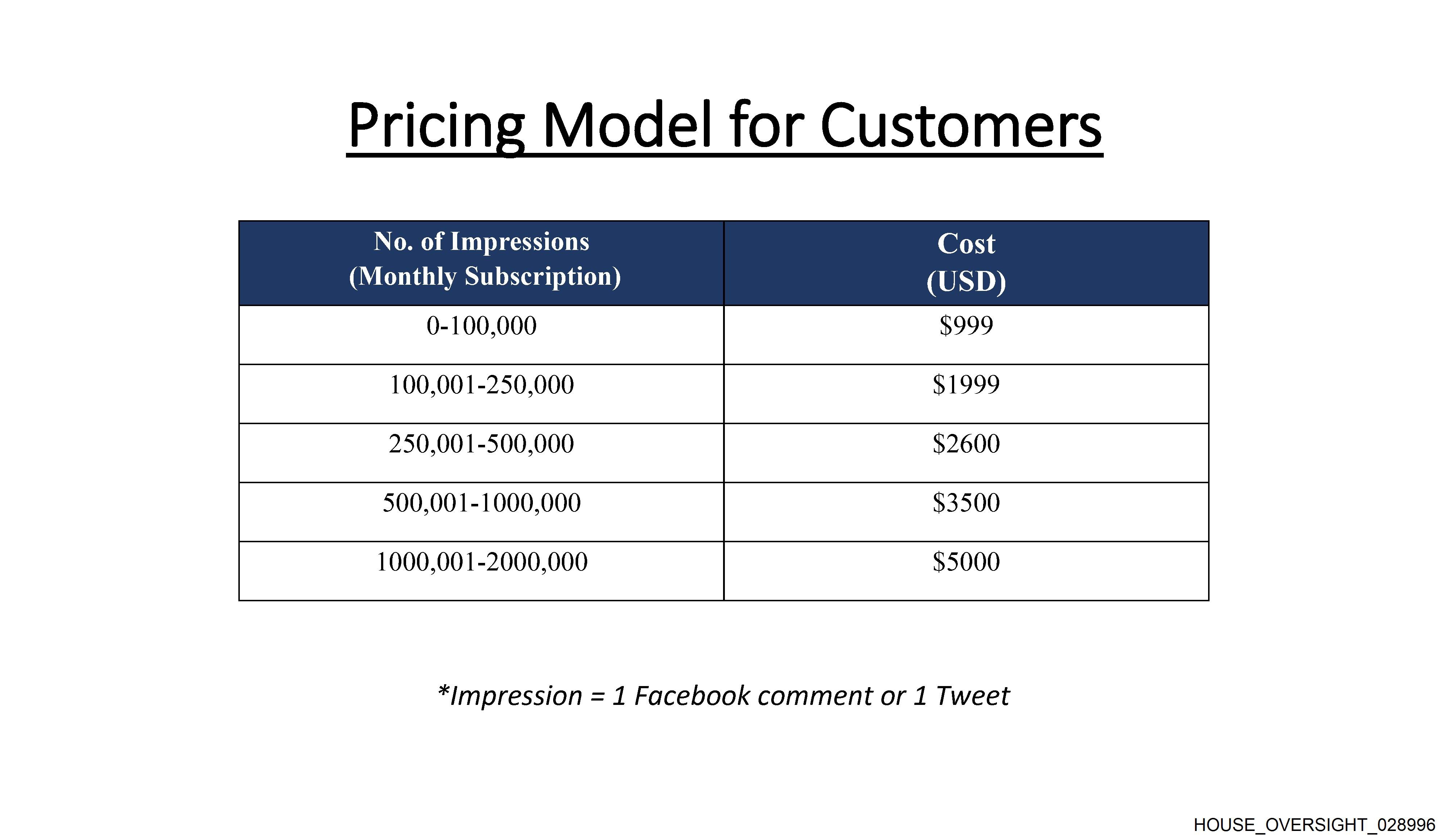The image shows a table with the heading "PRICE MODEL" at the top.