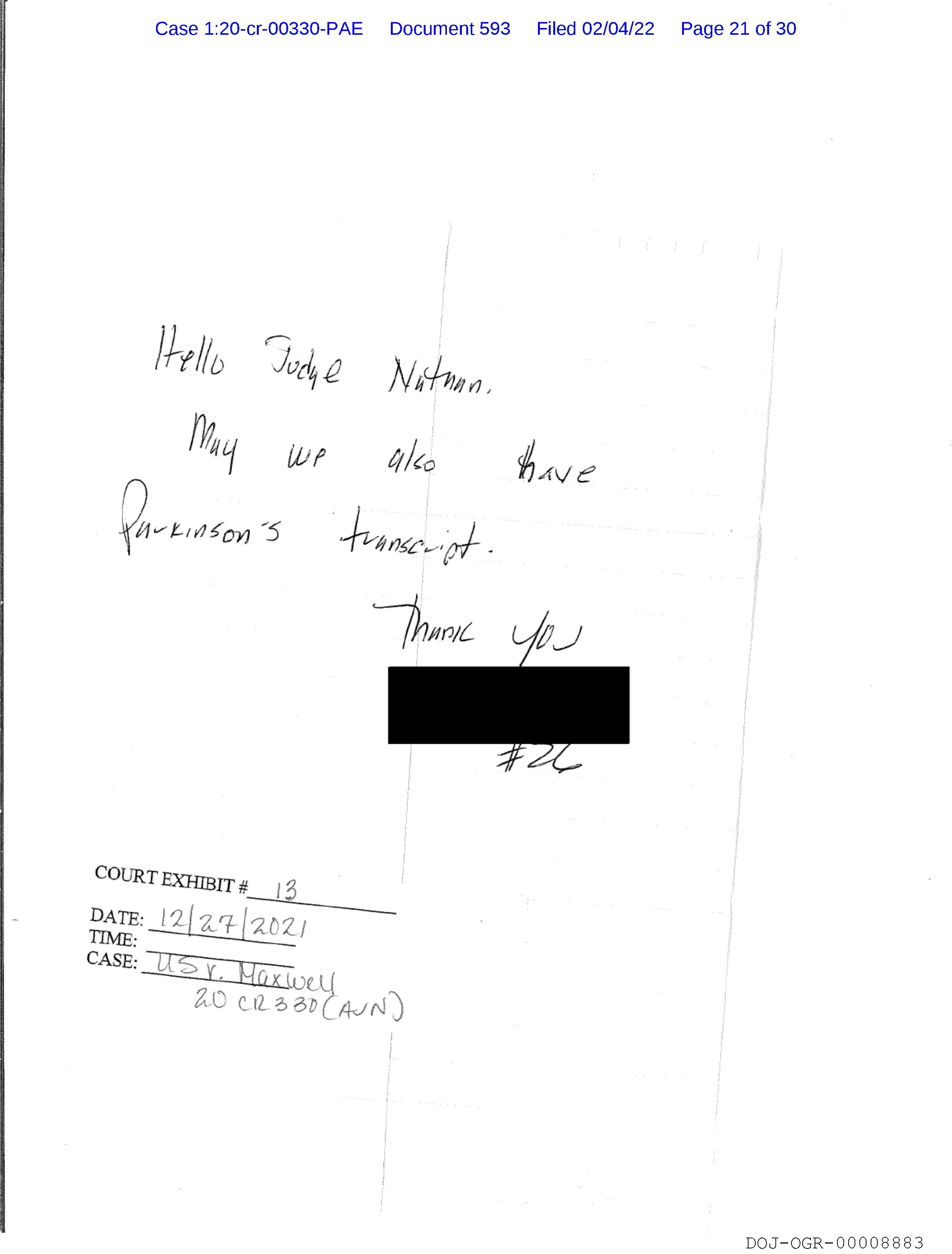 The image shows a handwritten note on a piece of paper with a black border at the top and bottom.