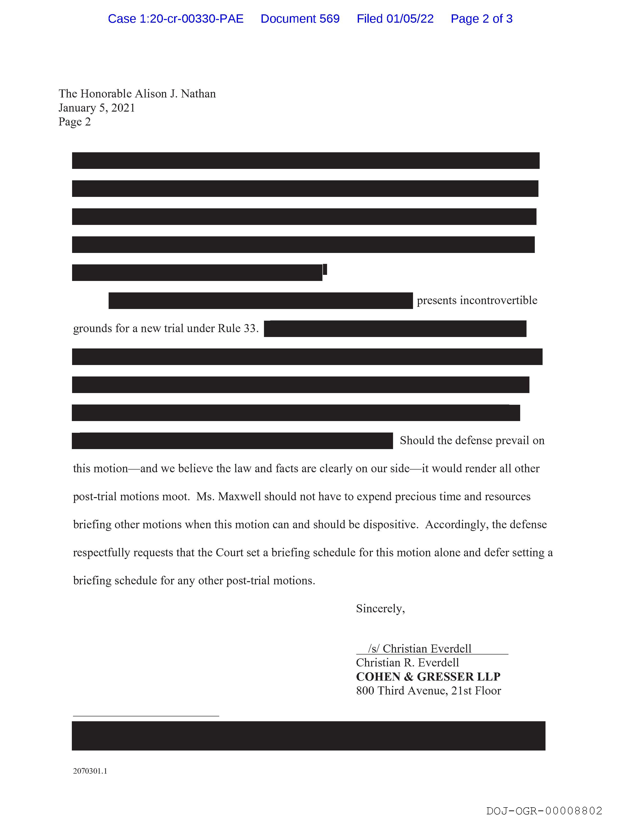 The image shows a document with several sections redacted or blacked out. The first section at the top of the page has been entirely obscured by redacting marks, making it impossible to read its content. Following this, there is a line of text that includes a recipient's name and address, but only the name "Ashley" is visible without redaction. Further down, the body of the document contains text that has been blacked out, rendering it unreadable. The style of the image suggests it could be a printed copy of an official or sensitive letter due to the use of redactions for privacy.