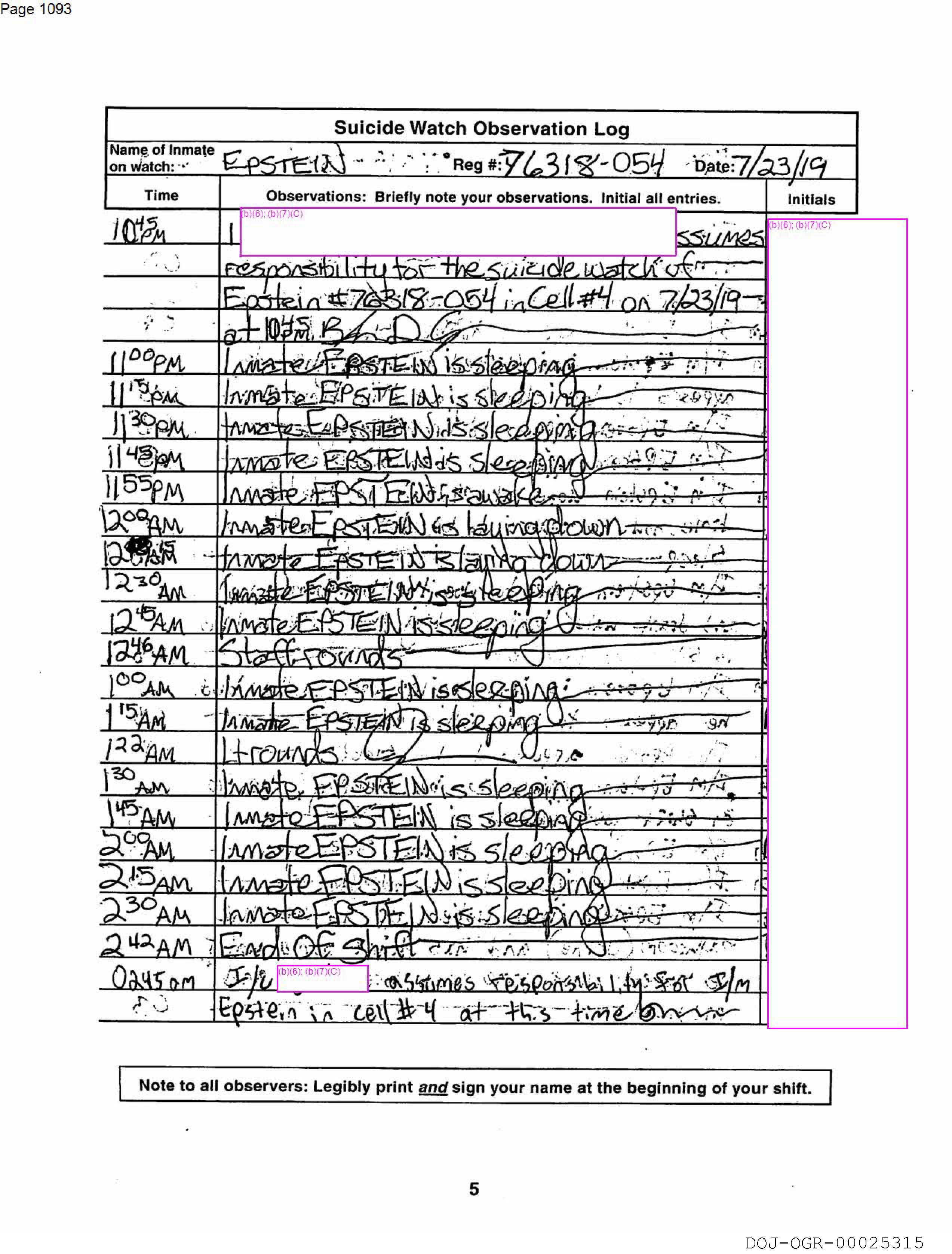 The image shows a handwritten document titled "SOCK MATCH OBSERVATION LOG" with a date "1/29/07" at the top. The document appears to be a list of names and times, suggesting a record-keeping process for sock matches or possibly some kind of inventory check. Each entry includes a name followed by a time in AM or PM format. There is visible text on the page, indicating it's an official log sheet. However, specific personal details are not legible due to the resolution of the image.