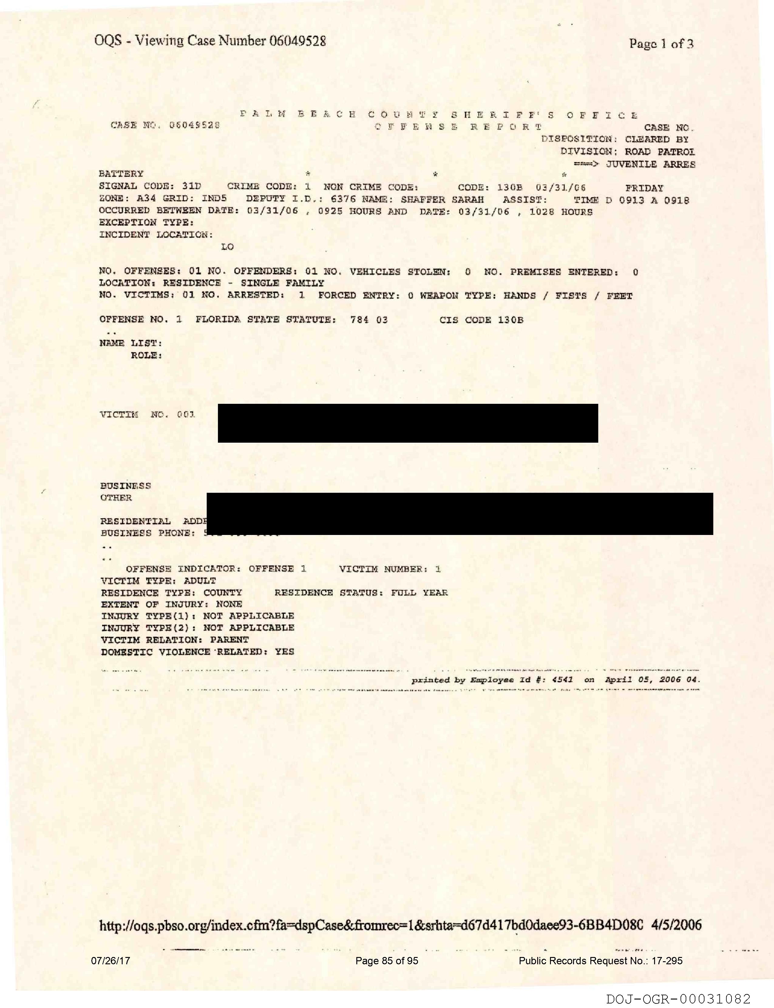 The image shows a page of text, which appears to be printed from a computer document. It is an old or historical document, as indicated by the quality and type of paper. The text includes black-out areas where certain information has been obscured; this is typically done for privacy or security reasons. There are no visible people or locations that can be discerned due to the focus on the printed content. The specific details of the text are not clear, but it seems to be some form of official document or record with sections divided by lines and headers.