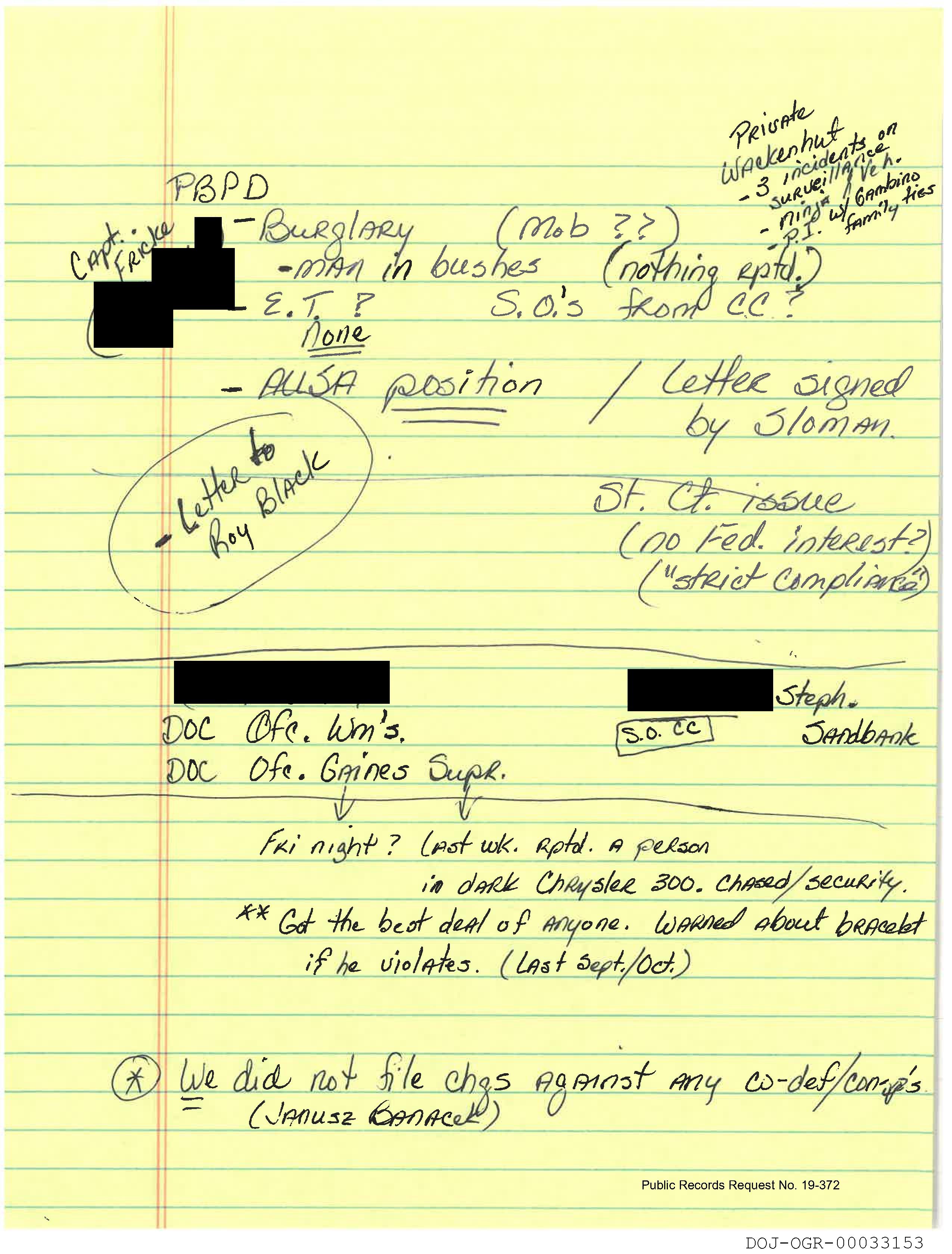 The image shows a handwritten note on lined paper, which appears to be part of a legal or court document due to the context provided by the visible text.