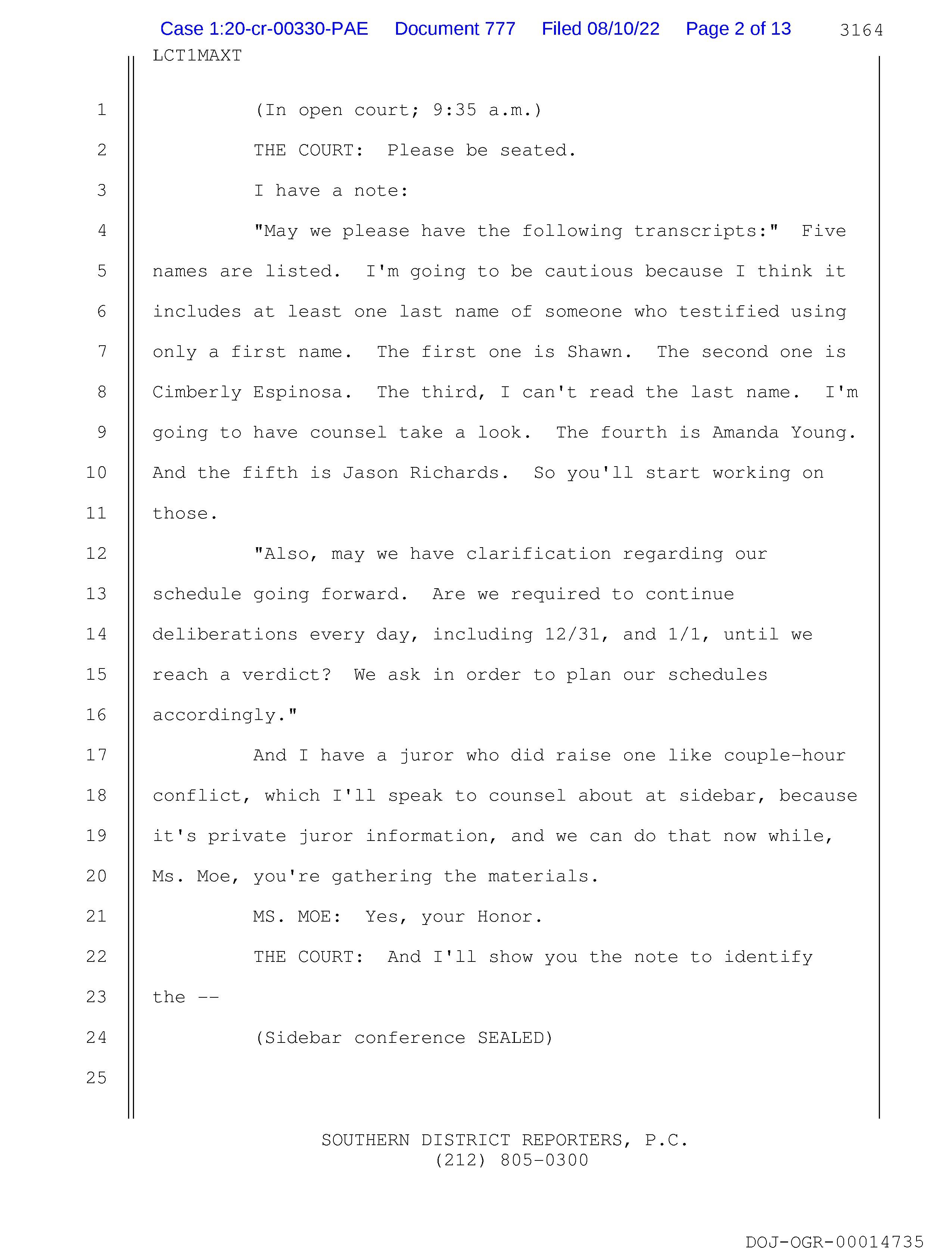 The image displays a scanned document with visible text and some blacked-out sections. The text appears to be from an official letter or report, possibly related to a legal case given the references to "Judge" and "Courtroom." There are also mentions of names that have been redacted. However, without more context, it's not possible to determine the exact nature of the document. The text is printed in black ink on a white background, indicating a standard typewritten format.