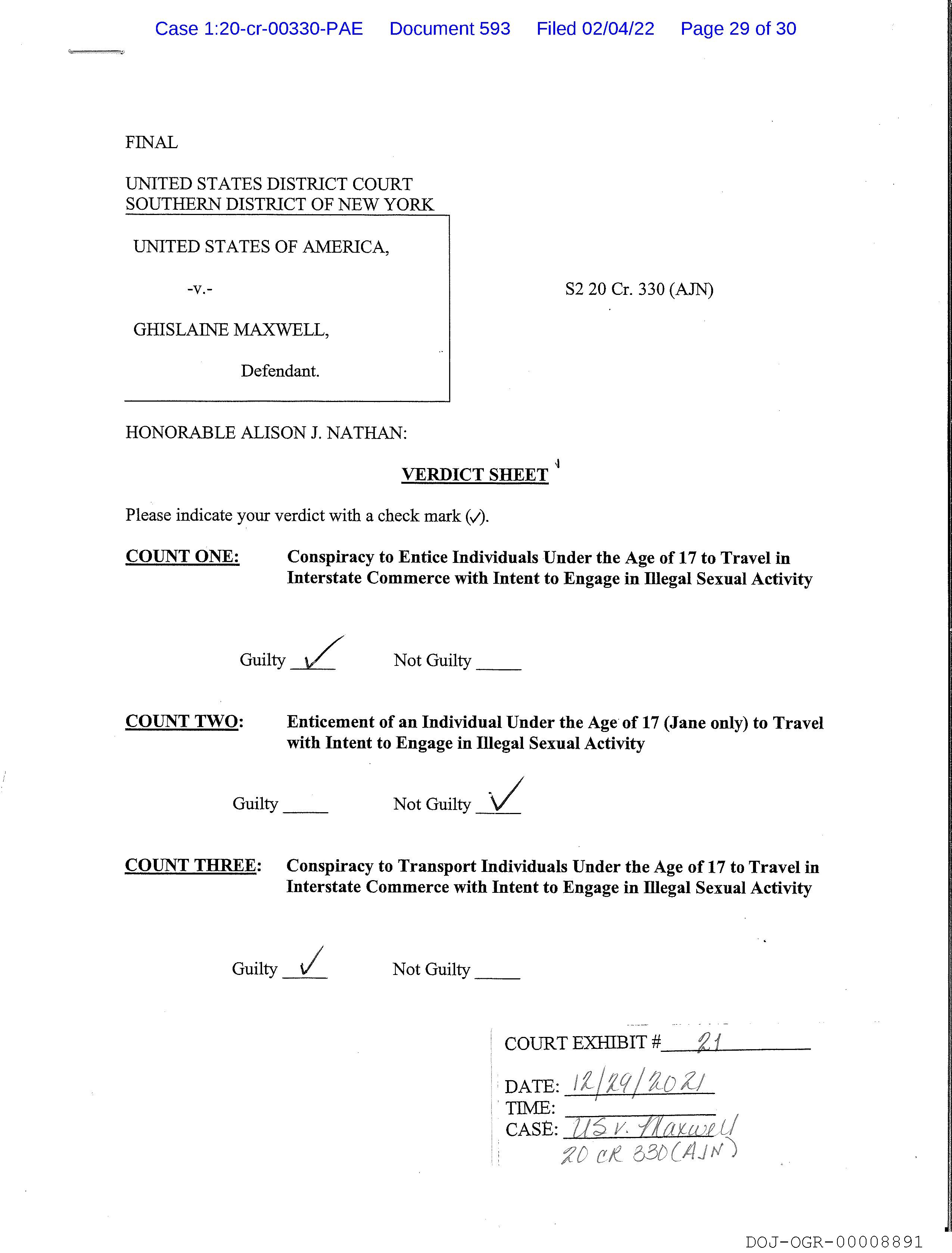 The image displays a scanned document with visible text and some blacked-out sections. The text appears to be from an official letter or report, possibly related to a legal case given the references to "Judge" and "Courtroom." There are also mentions of names that have been redacted. However, without more context, it's not possible to determine the exact nature of the document. The text is printed in black ink on a white background, indicating a standard typewritten format.