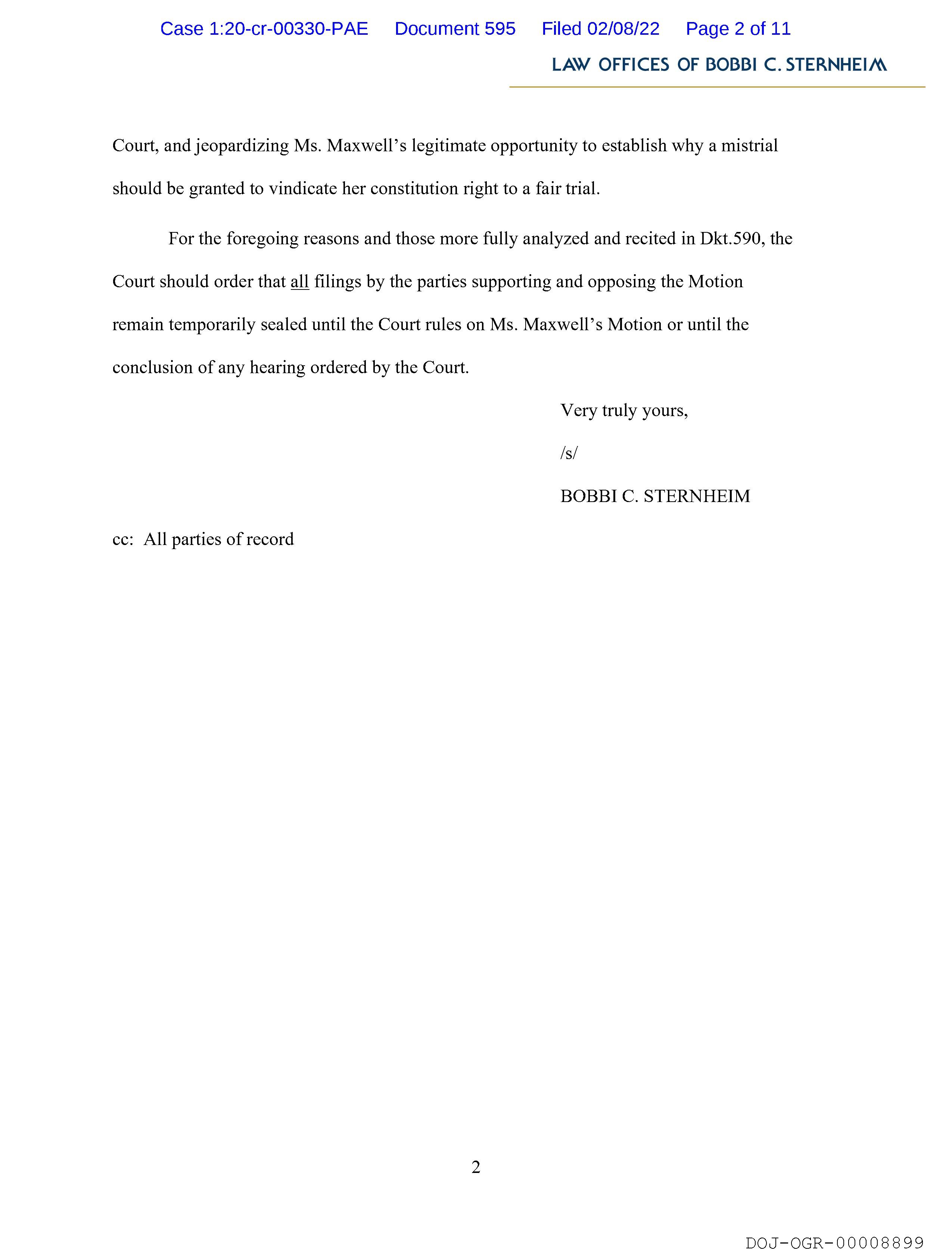 The image displays a scanned document with visible text and some blacked-out sections. The text appears to be from an official letter or report, possibly related to a legal case given the references to "Judge" and "Courtroom." There are also mentions of names that have been redacted. However, without more context, it's not possible to determine the exact nature of the document. The text is printed in black ink on a white background, indicating a standard typewritten format.