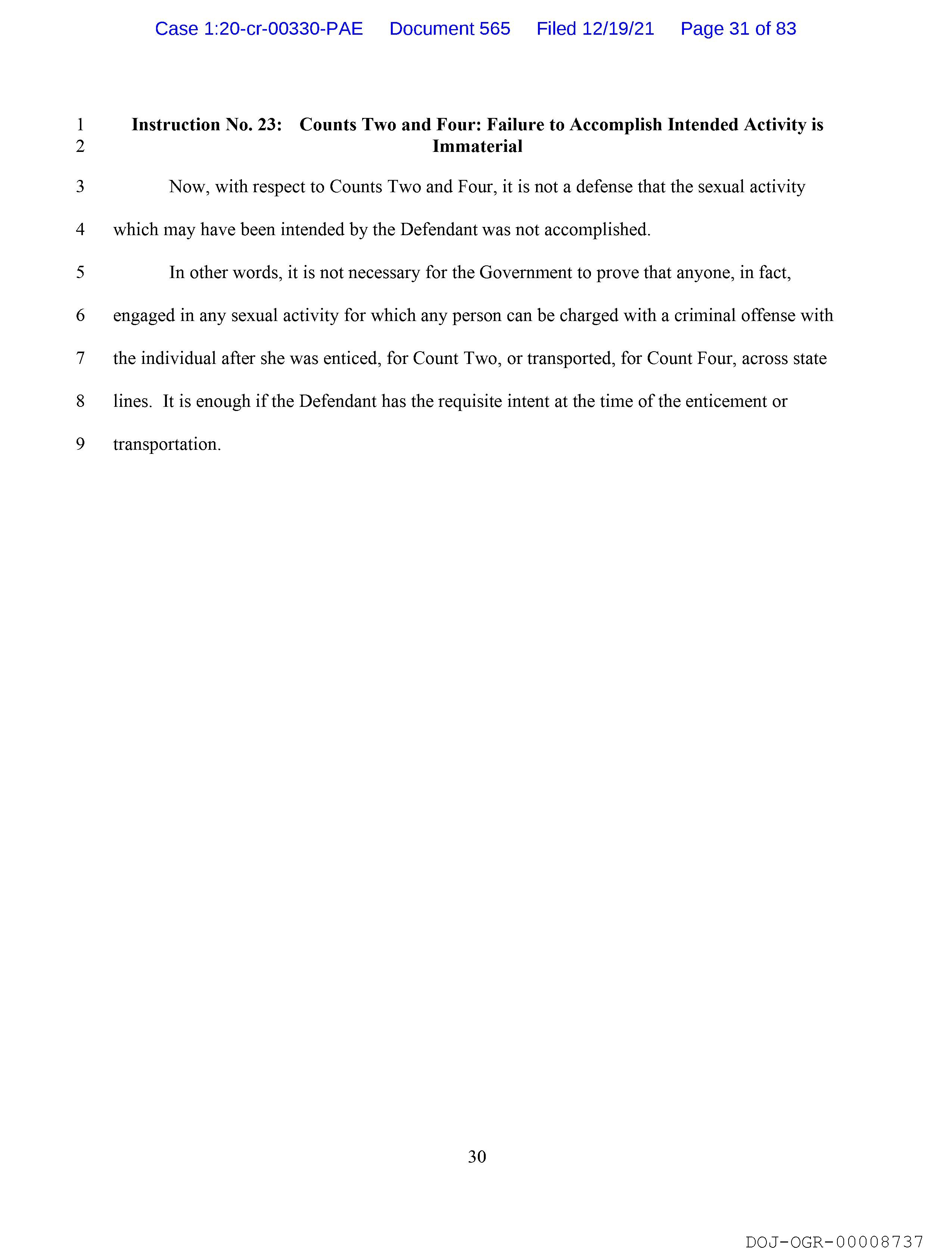 The image displays a scanned document with visible text and some blacked-out sections. The text appears to be from an official letter or report, possibly related to a legal case given the references to "Judge" and "Courtroom." There are also mentions of names that have been redacted. However, without more context, it's not possible to determine the exact nature of the document. The text is printed in black ink on a white background, indicating a standard typewritten format.