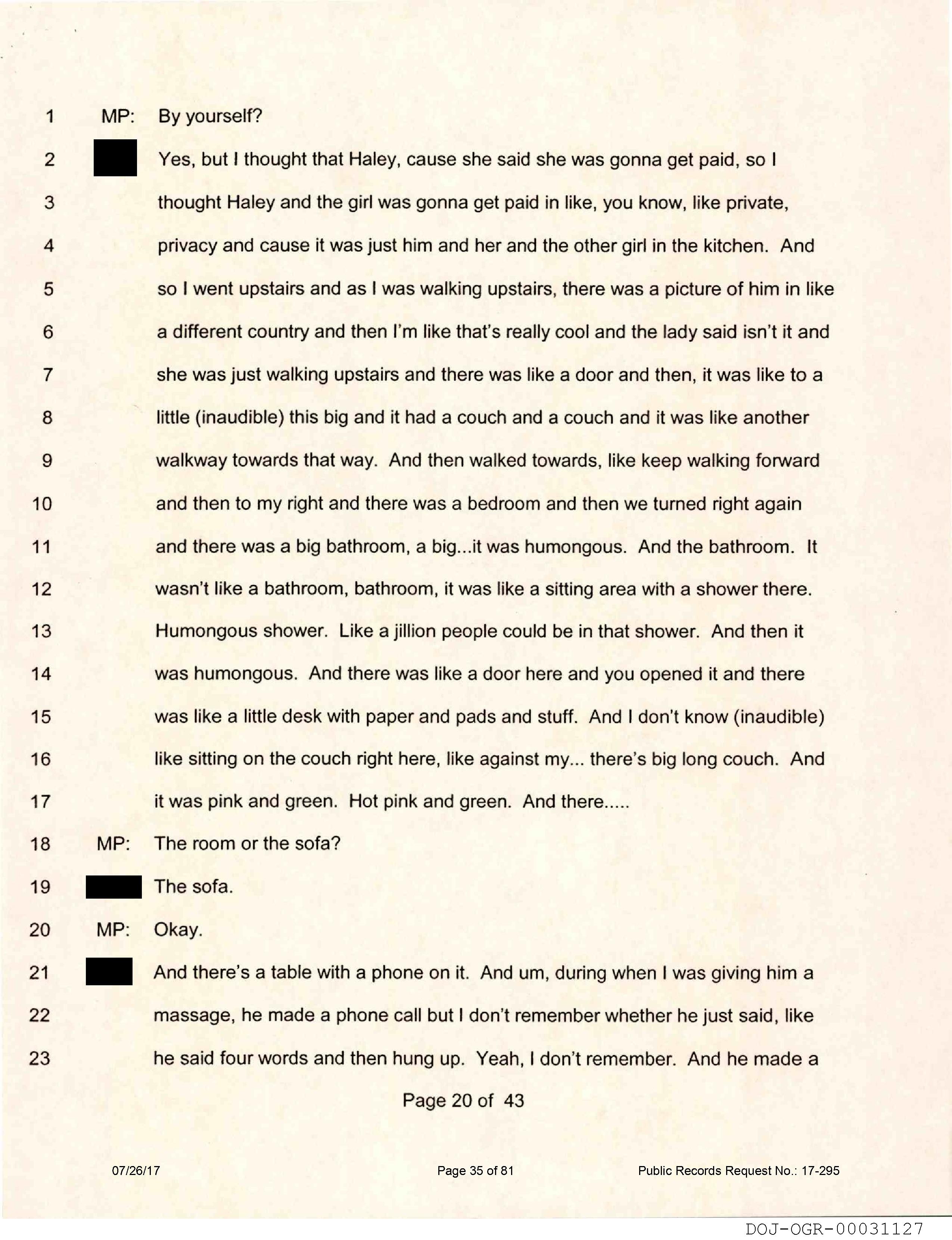 The image displays a black and white document with printed text on lined paper. The text appears to be from a legal proceeding or testimony given under oath, as indicated by the phrase "Under Oath" near the top of the page. Below that heading are numbered paragraphs containing questions and answers. One question reads: "Q Did you ever have any discussions with Mr. Philips about whether it is really appropriate for someone in his position to be attending meetings at the home of a lobbyist? A No, not really." The document also contains handwritten annotations in blue ink. These annotations include underlining certain words and phrases, making corrections or additions, and crossing out some text. There's a checkmark next to one of the handwritten changes, which might indicate approval or agreement with the amendment. The quality of the image is not high-resolution, making it difficult to read all the fine details.
