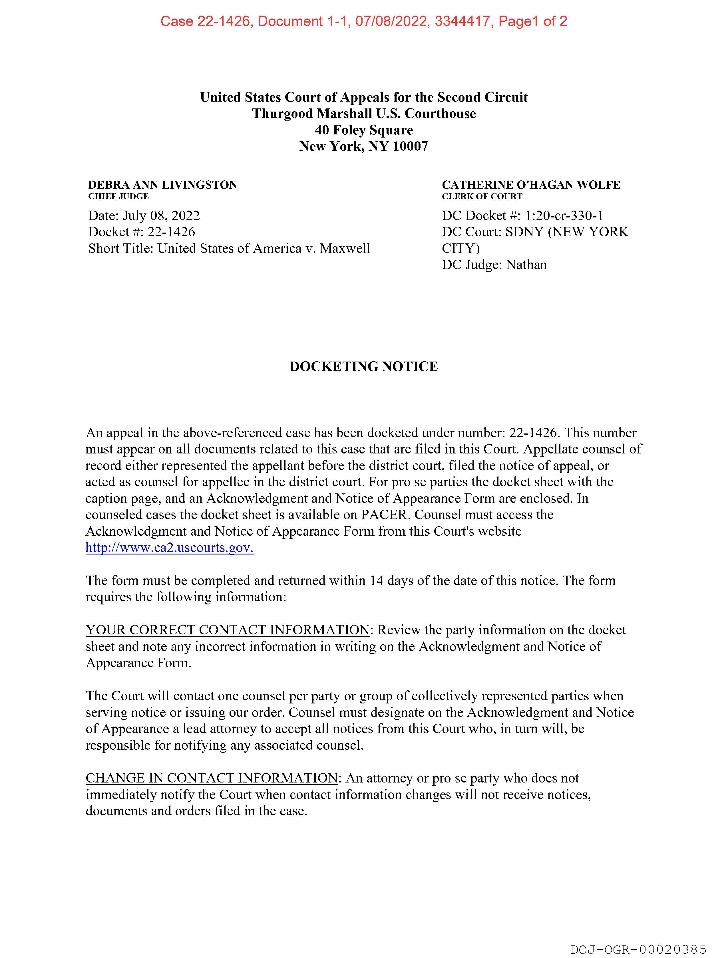 The image displays a scanned document with visible text and some blacked-out sections. The text appears to be from an official letter or report, possibly related to a legal case given the references to "Judge" and "Courtroom." There are also mentions of names that have been redacted. However, without more context, it's not possible to determine the exact nature of the document. The text is printed in black ink on a white background, indicating a standard typewritten format.
