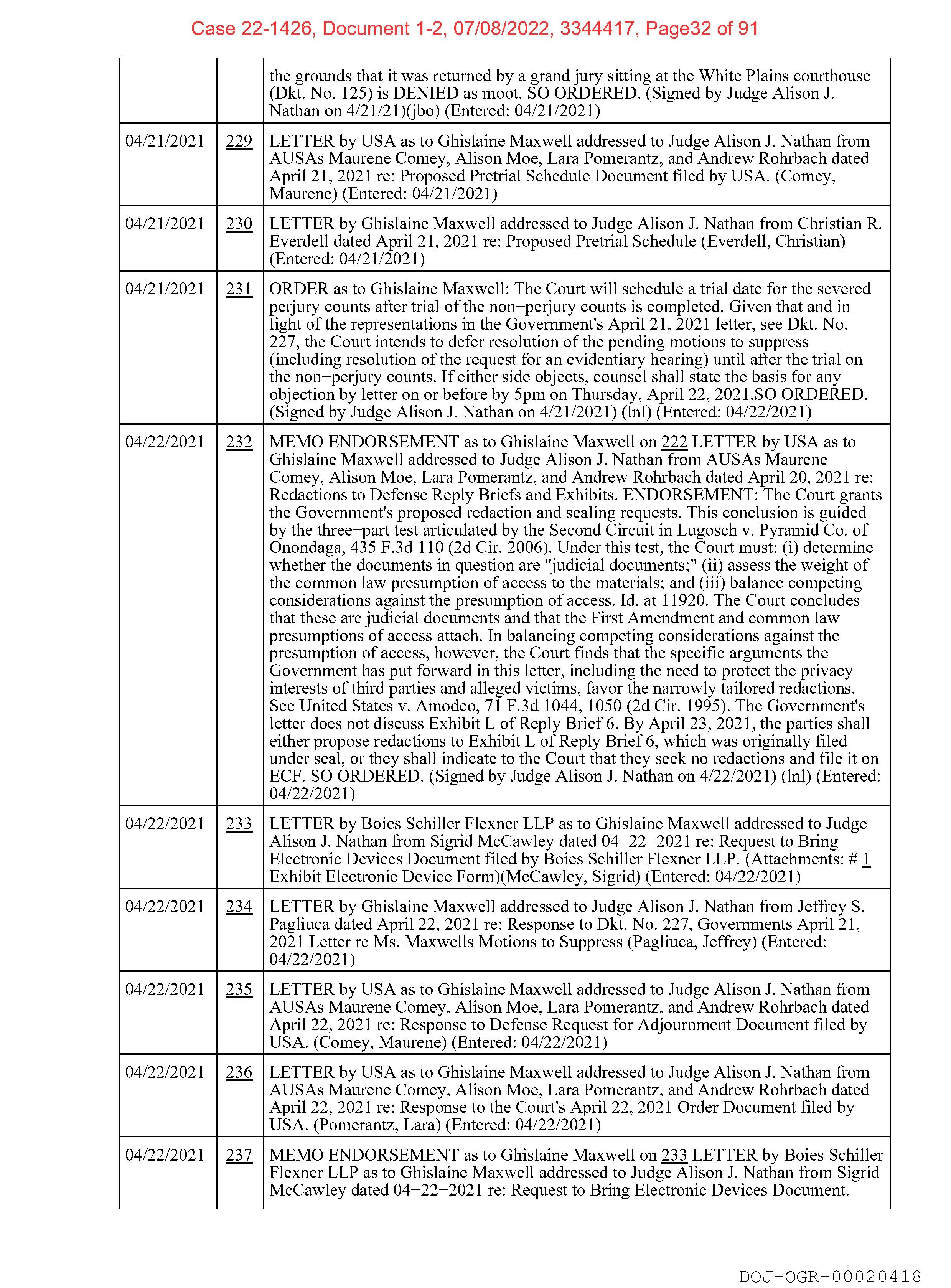 The image displays a legal document with handwritten annotations and corrections. The document appears to be an official court transcript, as indicated by the context and content of the writing. There are several lines of text, some crossed out with red pen, which suggests editing or clarification of certain points. At the bottom, there is a red stamp indicating "Received" along with a date in 2021. The style of the image is formal and legalistic, typical of court records.