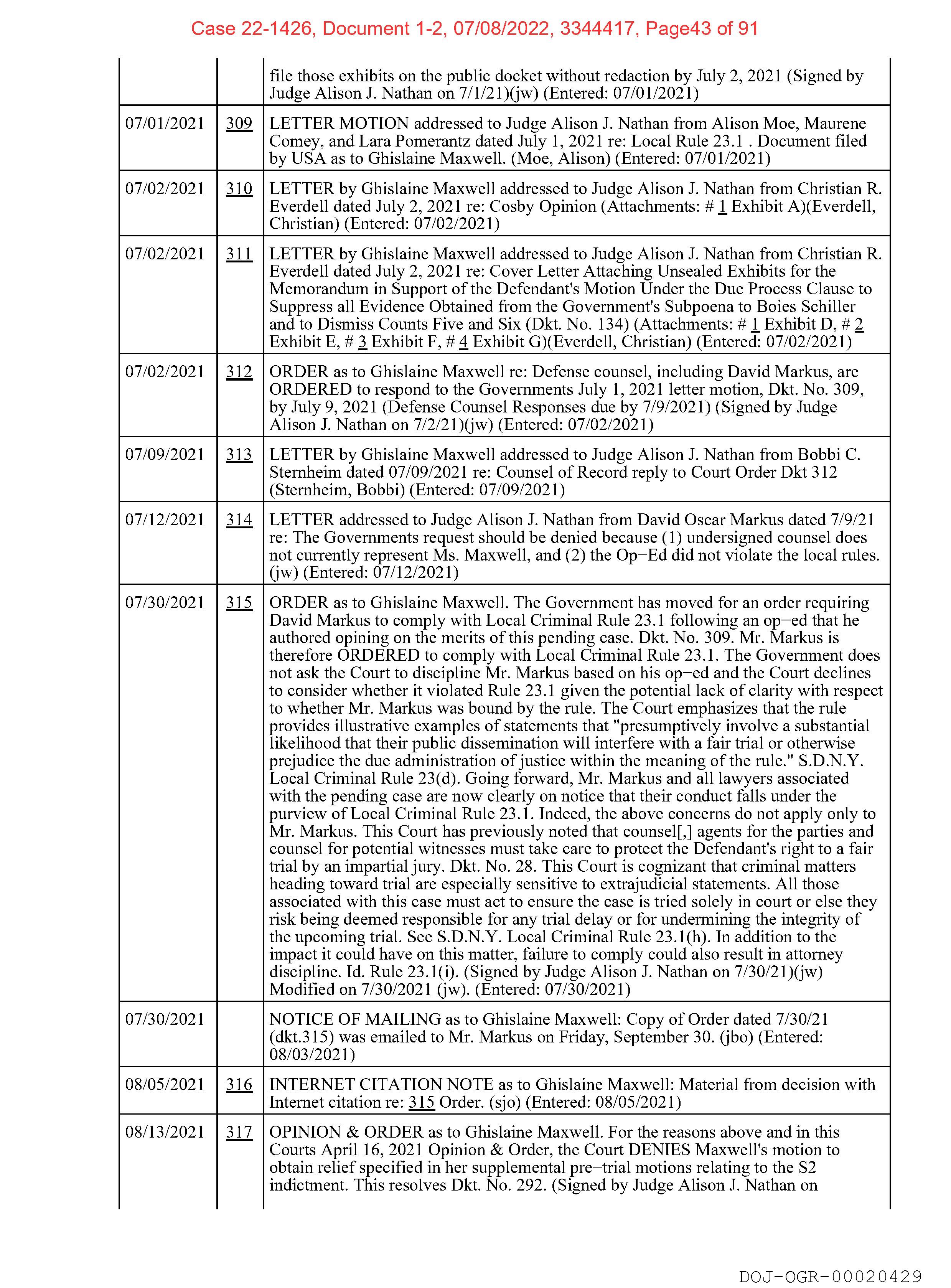 The image appears to be a photograph of a printed document from the Federal Bureau of Investigation (FBI). The top part of the document shows the FBI's official seal and logo. The document is partially redacted with black lines covering certain information, including names or other sensitive details that would typically identify individuals involved in an investigation. The visible text includes dates and references to legal proceedings such as "Case Number" and a court citation. There are also instructions for handling the document, indicating it is a restricted piece of evidence related to an ongoing case.