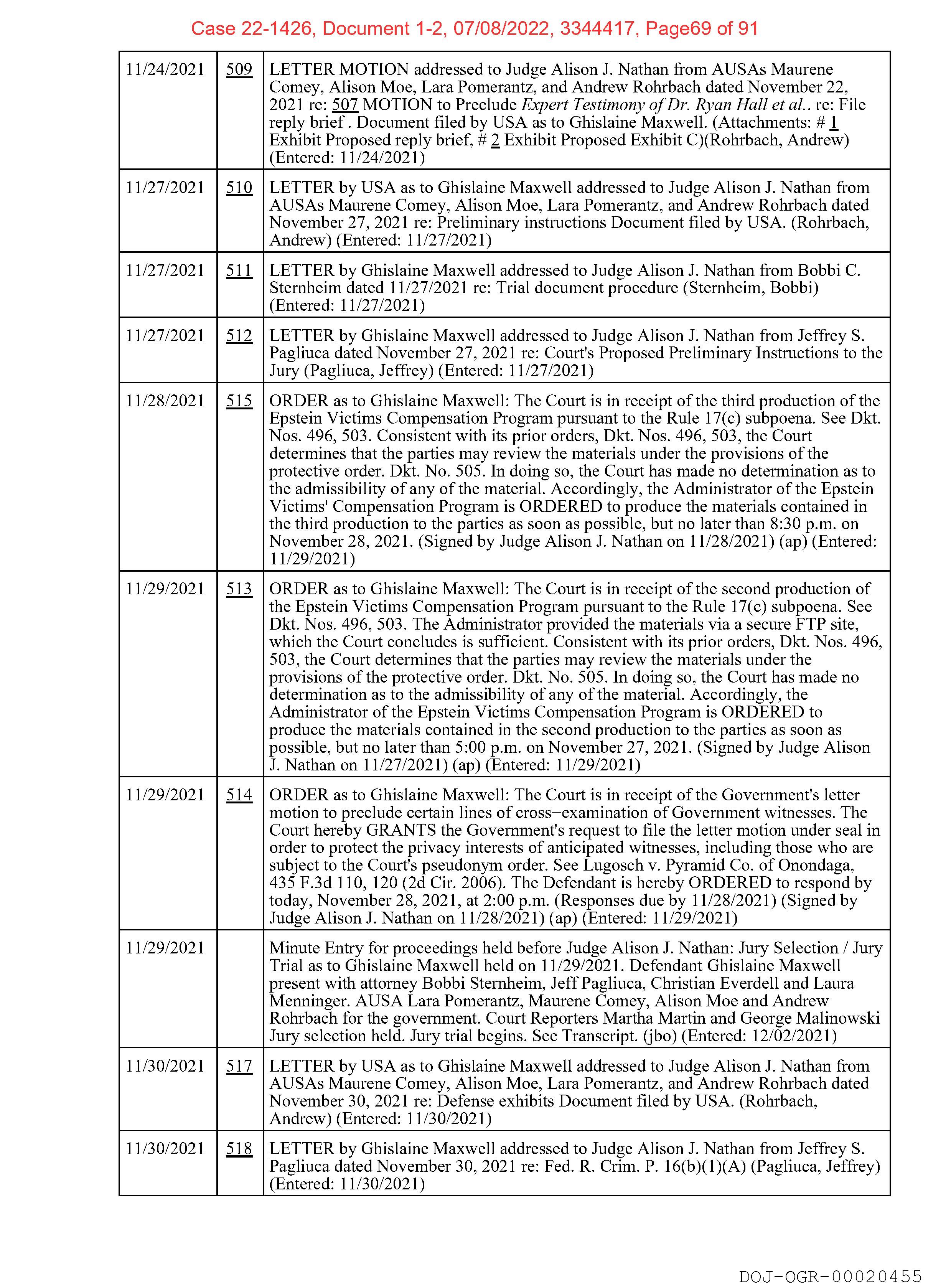 The image displays a scanned document with visible text and some blacked-out sections. The text appears to be from an official letter or report, possibly related to a legal case given the references to "Judge" and "Courtroom." There are also mentions of names that have been redacted. However, without more context, it's not possible to determine the exact nature of the document. The text is printed in black ink on a white background, indicating a standard typewritten format.