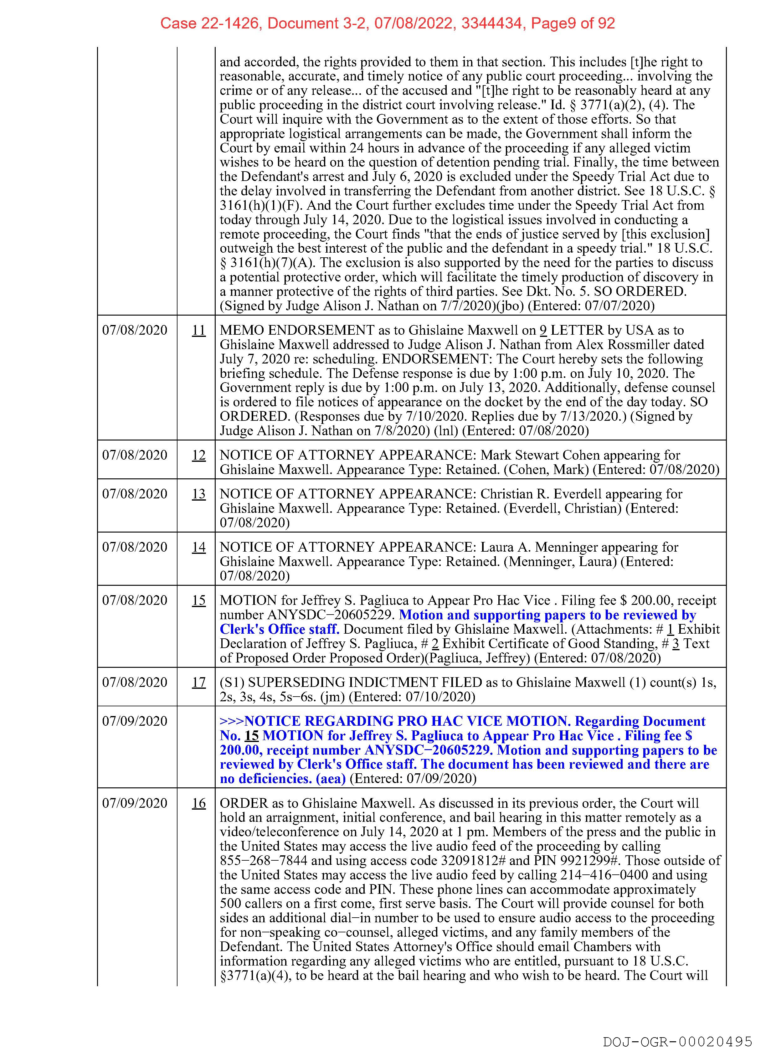 The image displays a scanned document with visible text and some blacked-out sections. The text appears to be from an official letter or report, possibly related to a legal case given the references to "Judge" and "Courtroom." There are also mentions of names that have been redacted. However, without more context, it's not possible to determine the exact nature of the document. The text is printed in black ink on a white background, indicating a standard typewritten format.