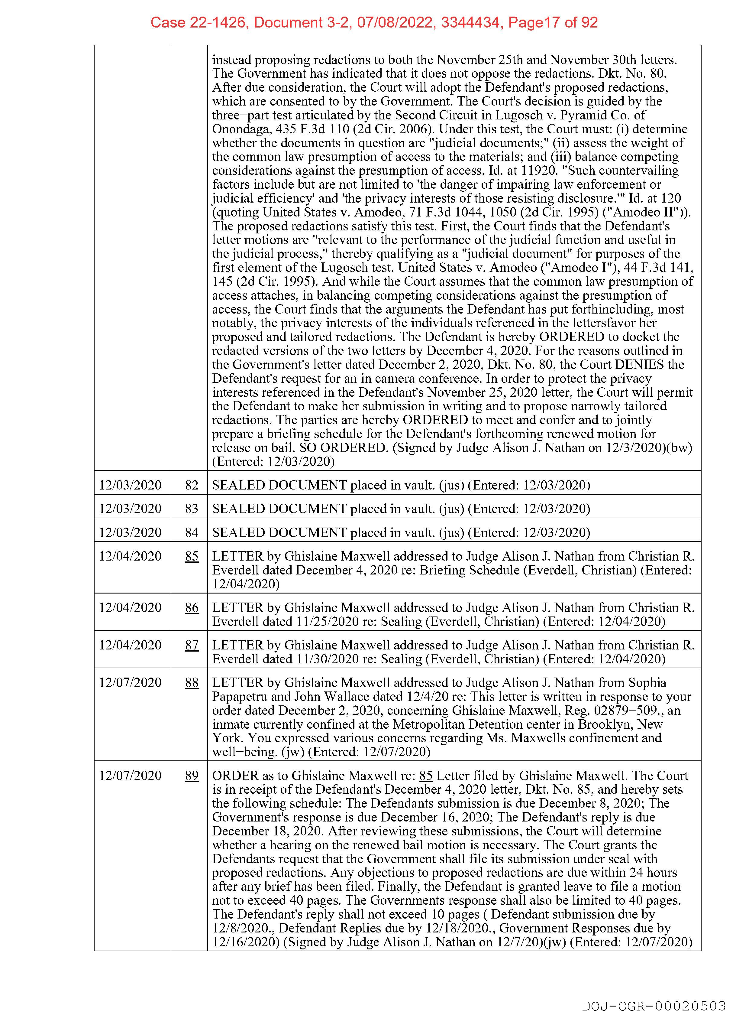 The image displays a scanned document with visible text and some blacked-out sections. The text appears to be from an official letter or report, possibly related to a legal case given the references to "Judge" and "Courtroom." There are also mentions of names that have been redacted. However, without more context, it's not possible to determine the exact nature of the document. The text is printed in black ink on a white background, indicating a standard typewritten format.