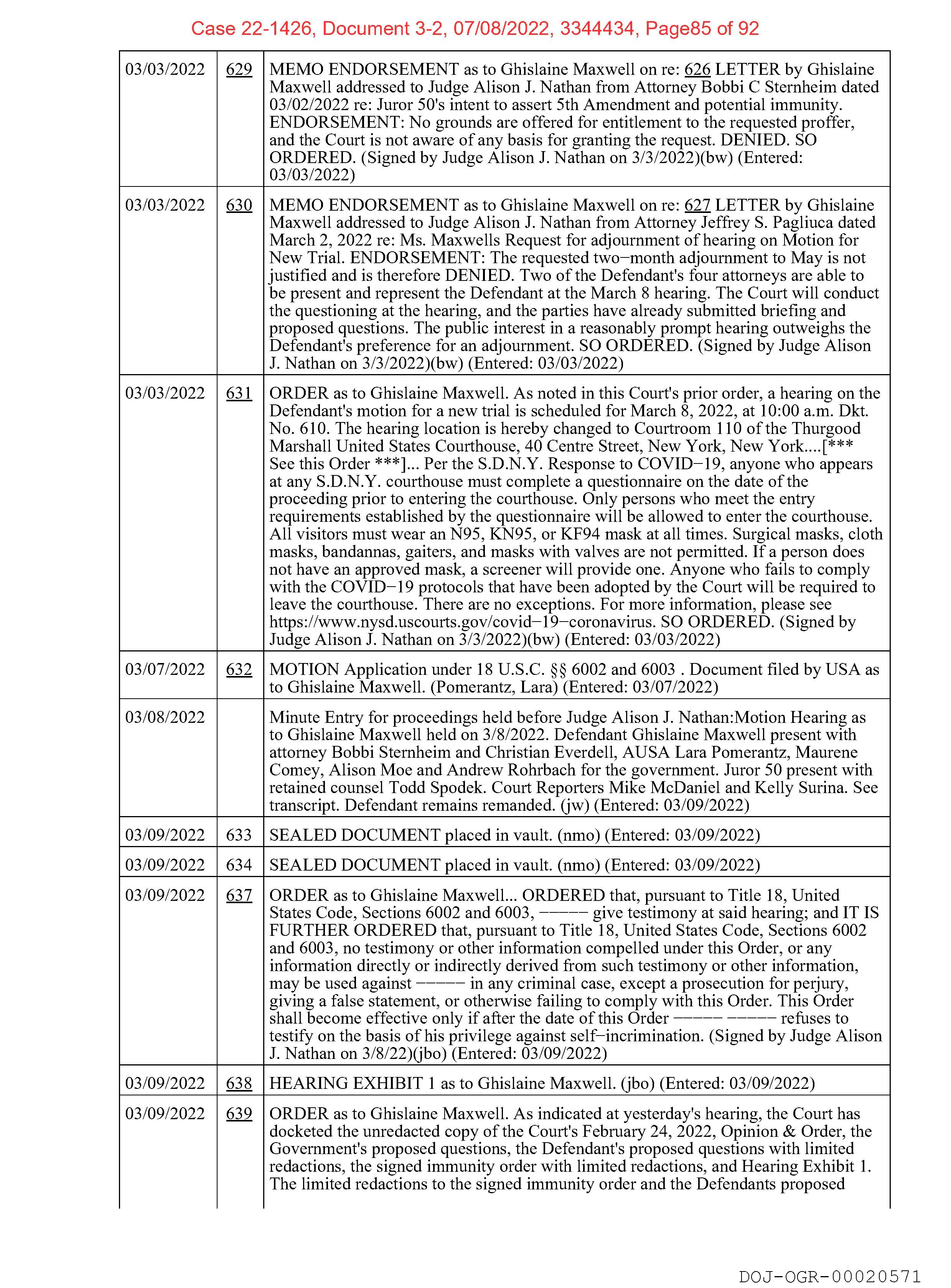 The image displays a scanned document with visible text and some blacked-out sections. The text appears to be from an official letter or report, possibly related to a legal case given the references to "Judge" and "Courtroom." There are also mentions of names that have been redacted. However, without more context, it's not possible to determine the exact nature of the document. The text is printed in black ink on a white background, indicating a standard typewritten format.