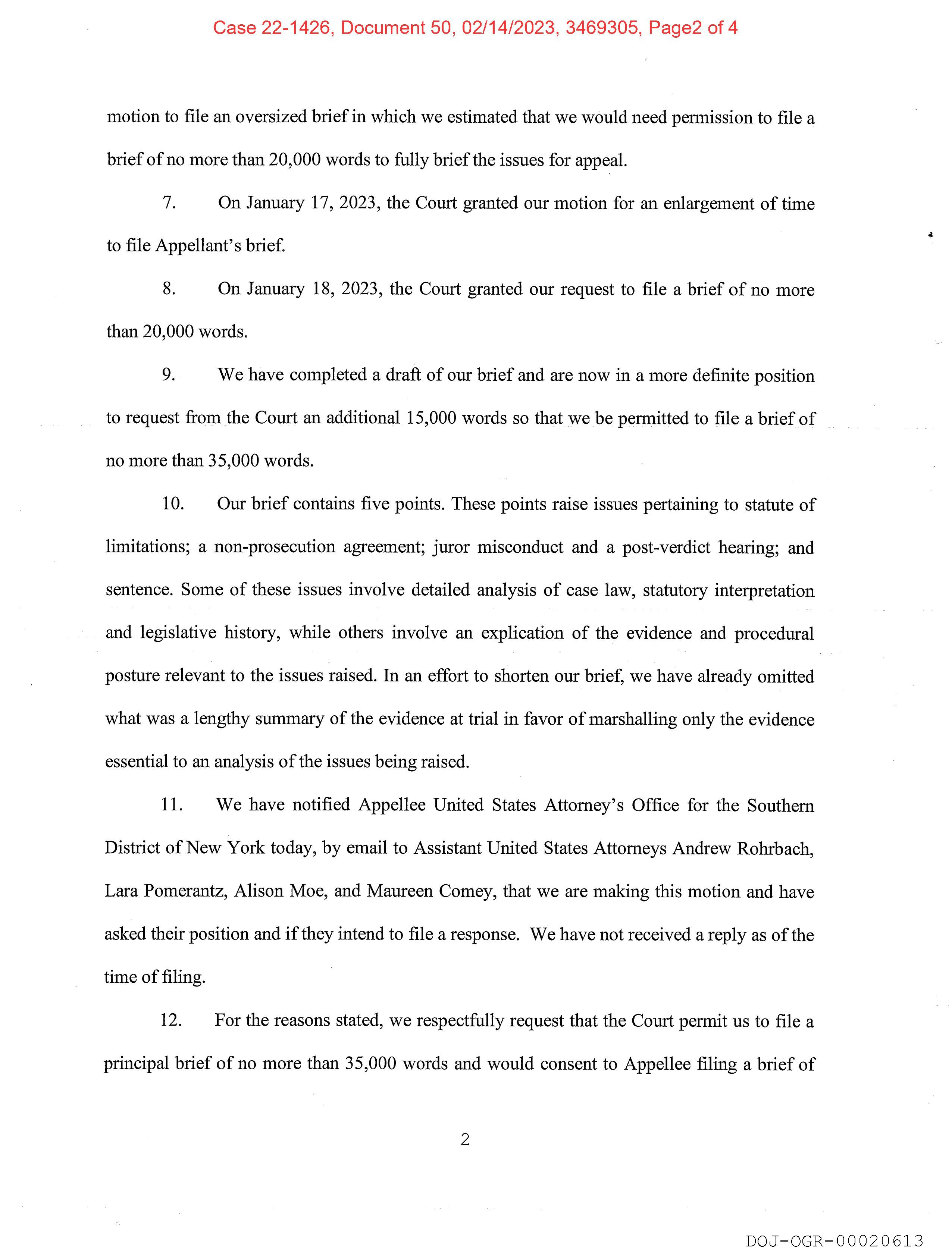 The image displays a scanned document with visible text and some blacked-out sections. The text appears to be from an official letter or report, possibly related to a legal case given the references to "Judge" and "Courtroom." There are also mentions of names that have been redacted. However, without more context, it's not possible to determine the exact nature of the document. The text is printed in black ink on a white background, indicating a standard typewritten format.
