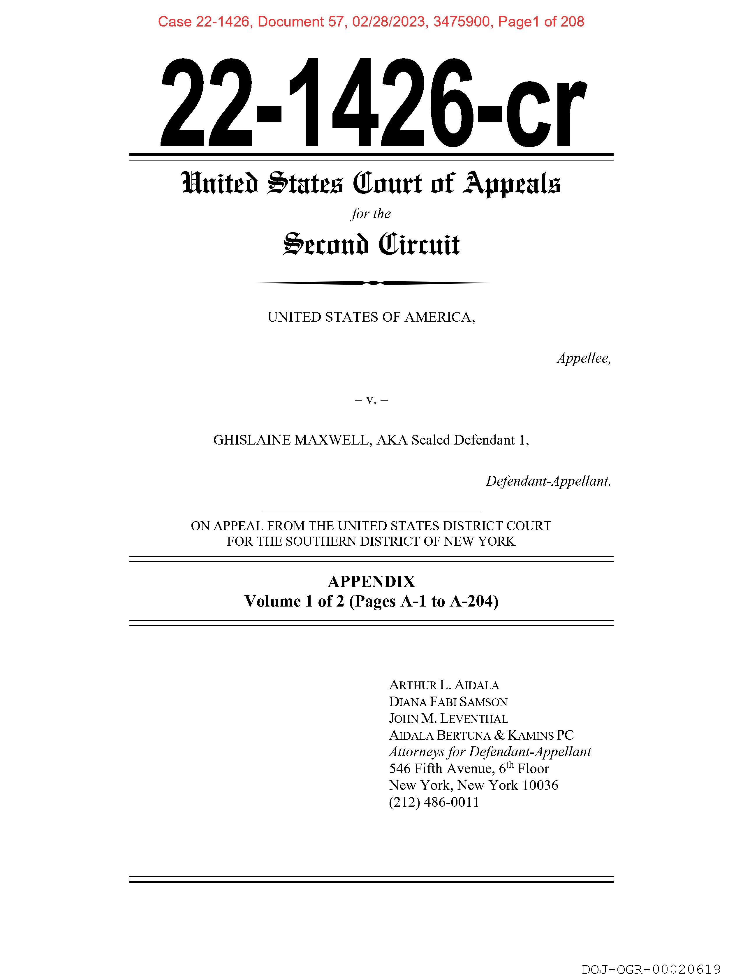 The image displays a document with the header "United States Court of Appeals for the Second Circuit" and the file number "21-1426(CR)." Below this, there's an appeal caption that includes various names, roles, and court references related to a legal proceeding. The text is in black on a white background and uses a formal typeface typical of official documents. The style of the image is straightforward and informational, with no images or graphics other than the text itself.