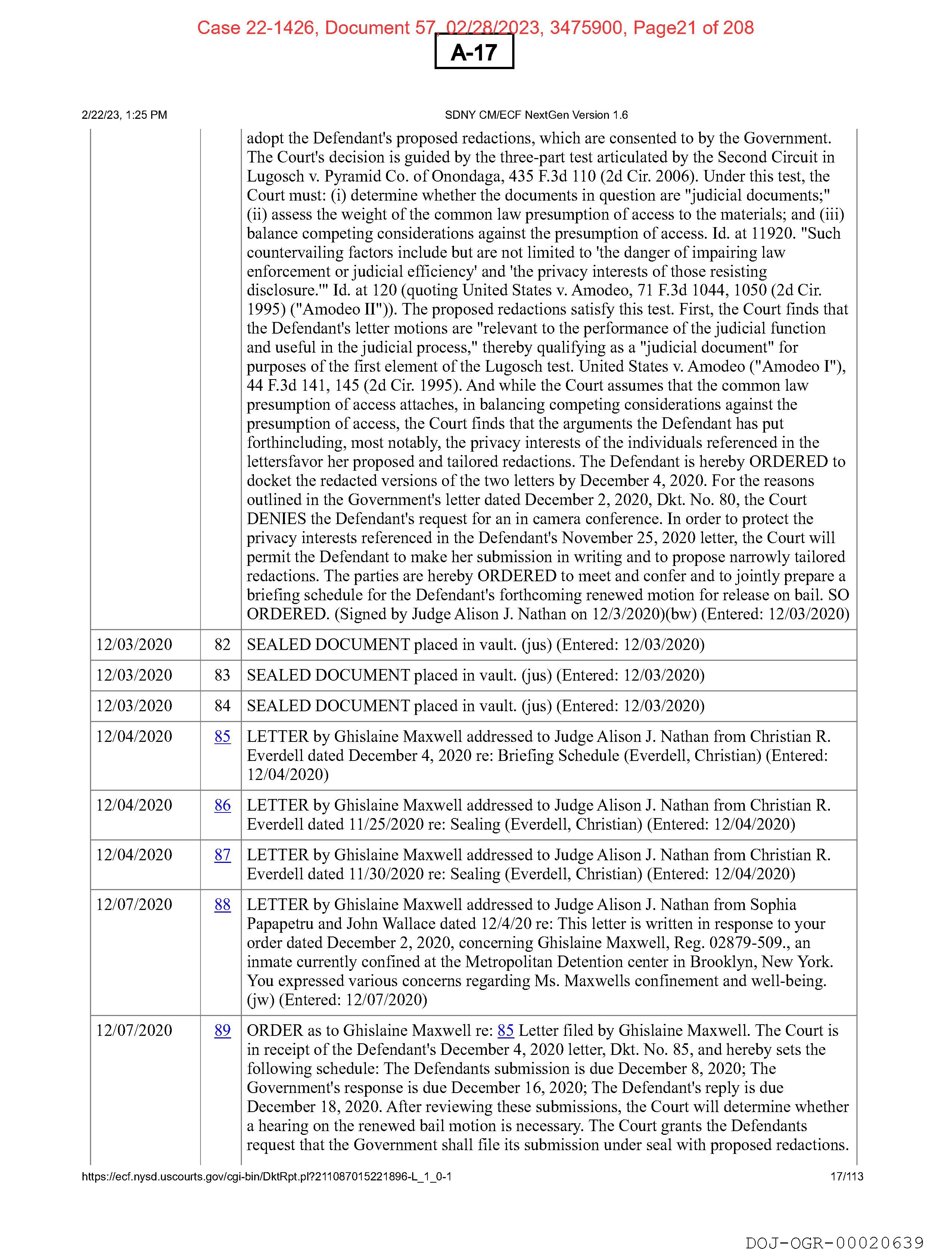 The image displays a scanned document with visible text and some blacked-out sections. The text appears to be from an official letter or report, possibly related to a legal case given the references to "Judge" and "Courtroom." There are also mentions of names that have been redacted. However, without more context, it's not possible to determine the exact nature of the document. The text is printed in black ink on a white background, indicating a standard typewritten format.