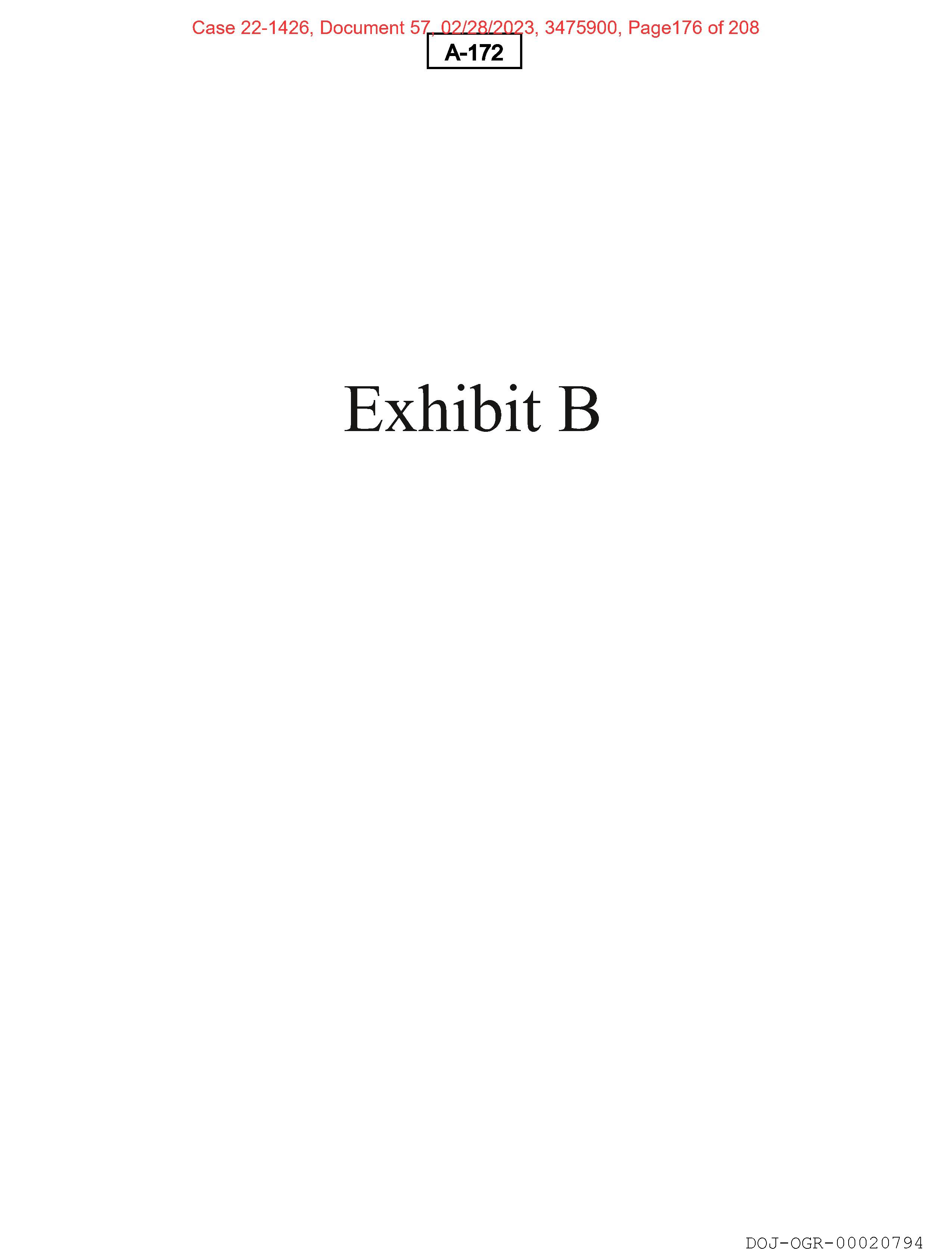 The image shows a document with a header at the top that reads "EXHIBIT B" in bold red font against a white background.