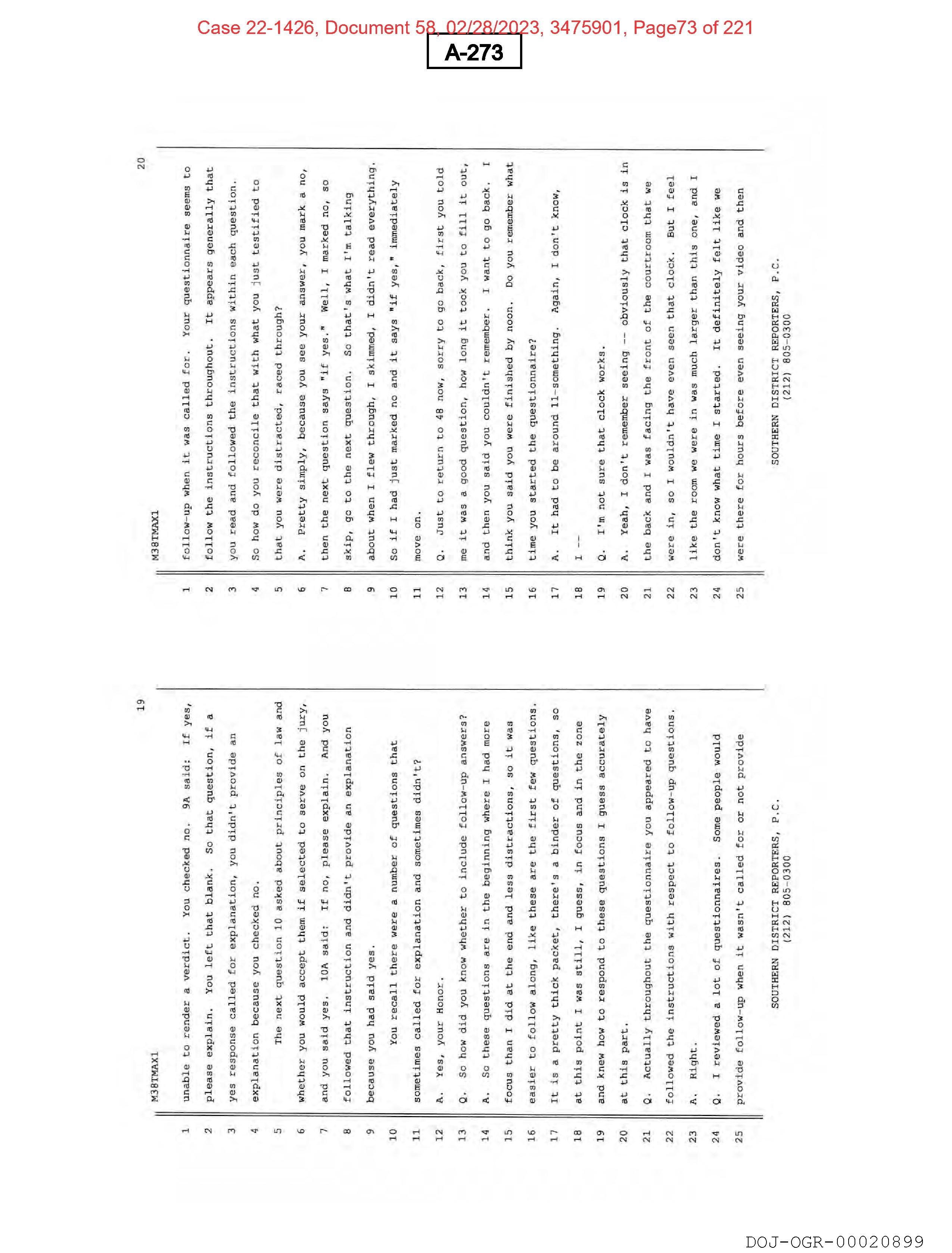 The image displays a scanned document with visible text and some blacked-out sections. The text appears to be from an official letter or report, possibly related to a legal case given the references to "Judge" and "Courtroom." There are also mentions of names that have been redacted. However, without more context, it's not possible to determine the exact nature of the document. The text is printed in black ink on a white background, indicating a standard typewritten format.
