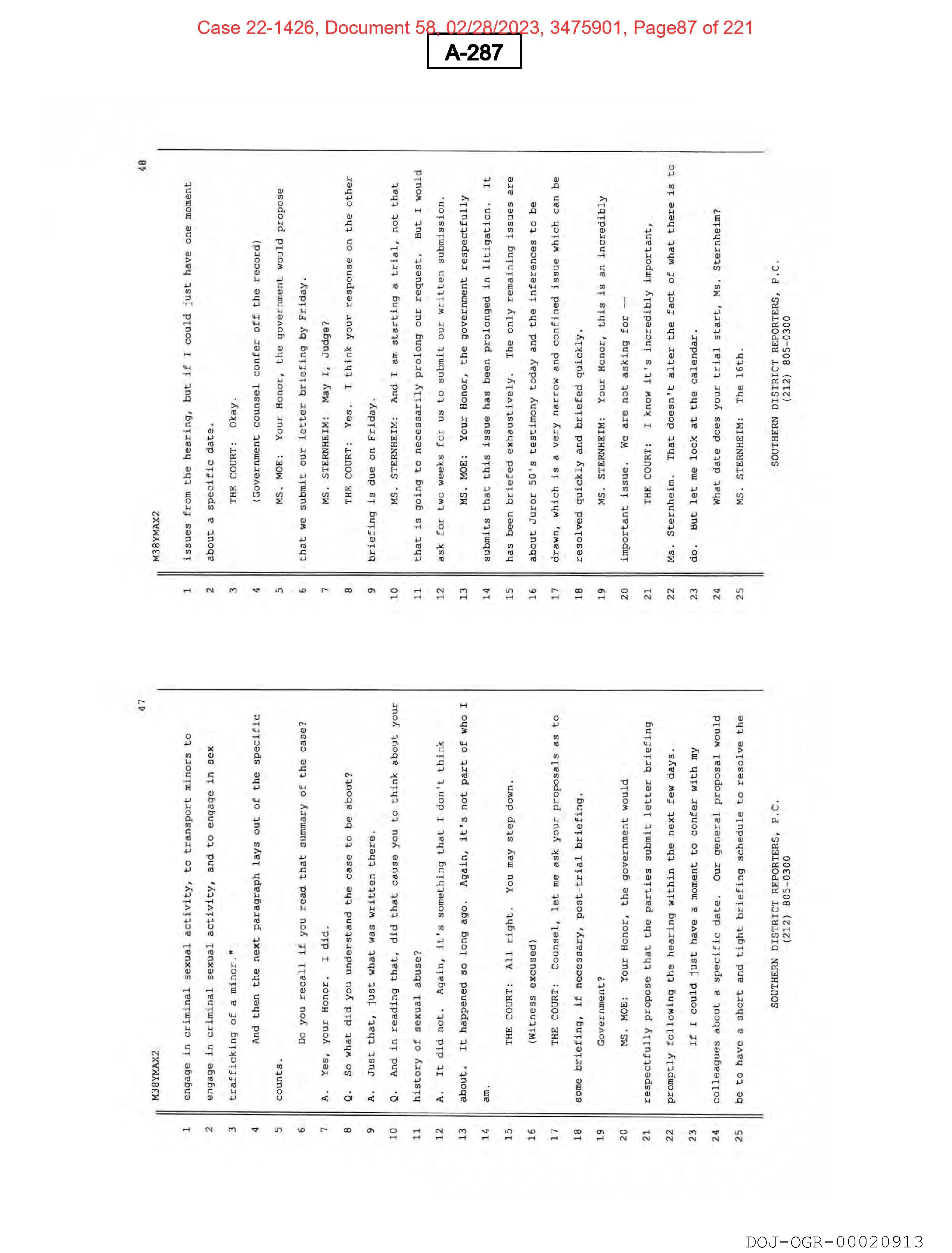 The image displays a scanned document with visible text and some blacked-out sections. The text appears to be from an official letter or report, possibly related to a legal case given the references to "Judge" and "Courtroom." There are also mentions of names that have been redacted. However, without more context, it's not possible to determine the exact nature of the document. The text is printed in black ink on a white background, indicating a standard typewritten format.