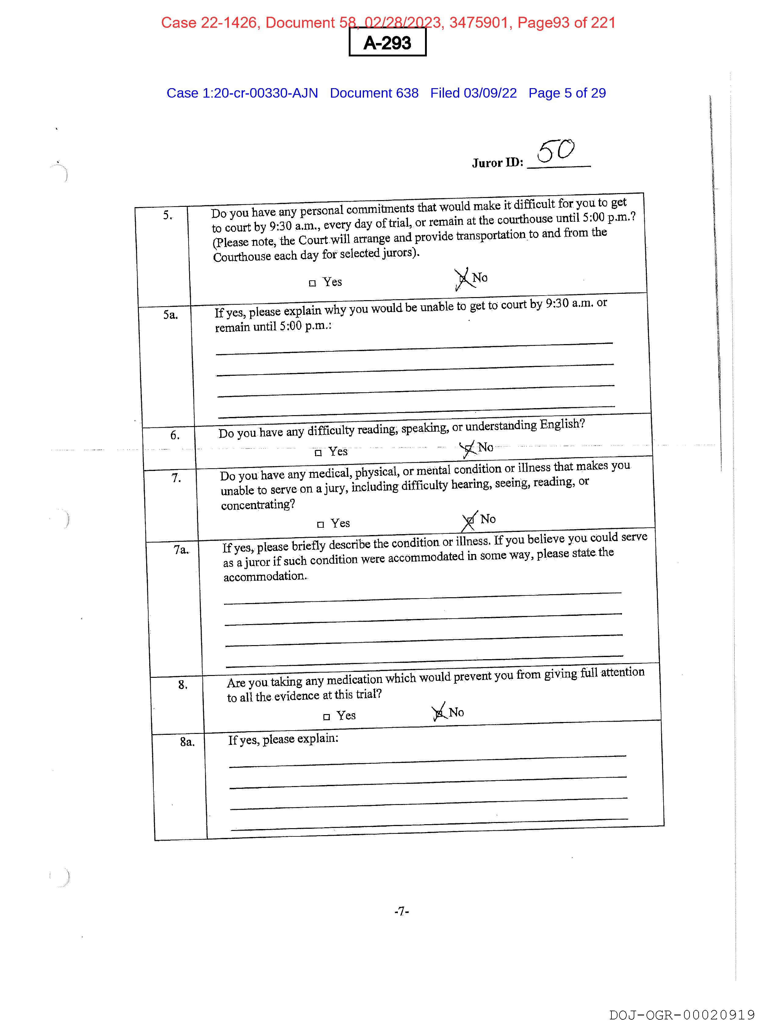 The image displays a printed document with a structured layout that includes numbered lines and boxes for responses.