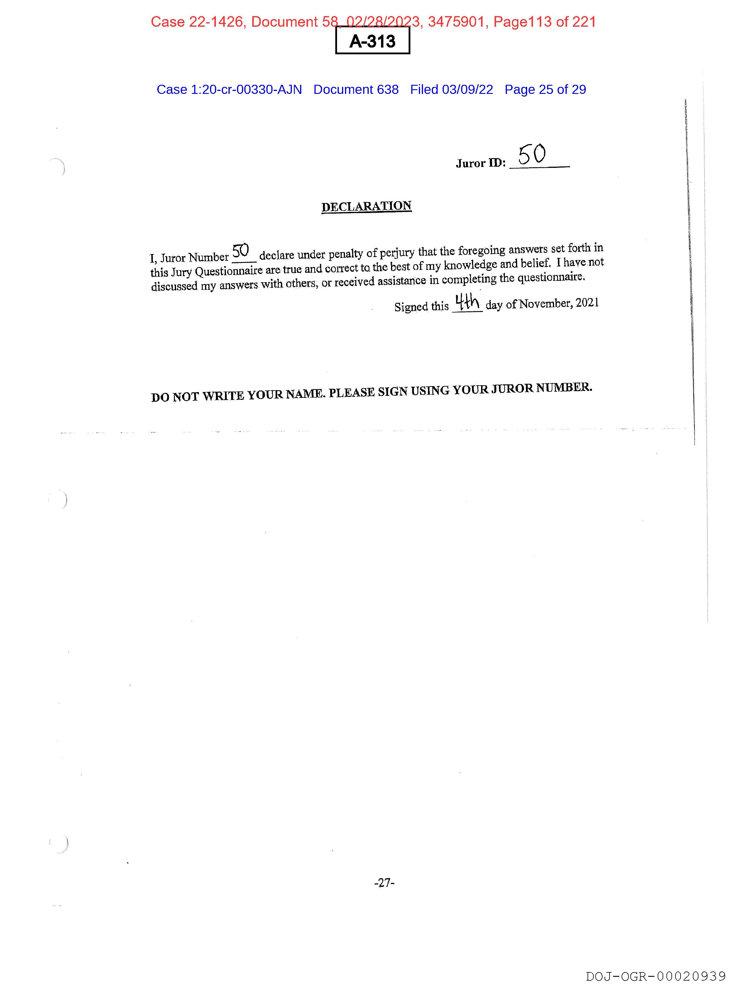 The image shows a piece of paper with handwritten notes and text. It appears to be an official document, possibly related to legal proceedings given the context of questions and responses. The top right corner contains numbers "1-25" followed by a question number "1". Below that, there's a series of questions or prompts with spaces for answers, some of which have been filled out with handwritten text. The document has several lines crossed out with a single line, indicating deletion or correction. The background is white and the handwriting varies in size and style, suggesting multiple authors or different levels of emphasis. It's a black and white image, and there are no images or graphics other than the textual content on the paper.